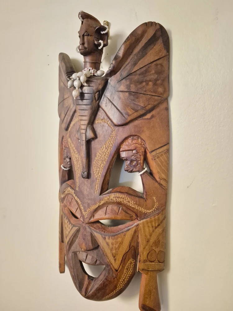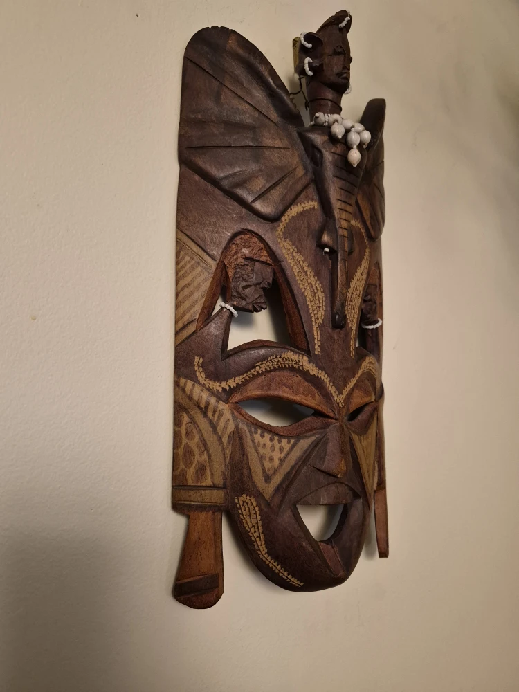 Unique wooden carved wall mask! It's a really interesting piece and would look great as a decorative item