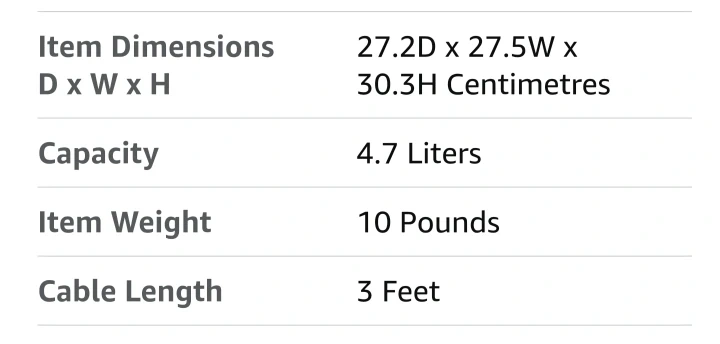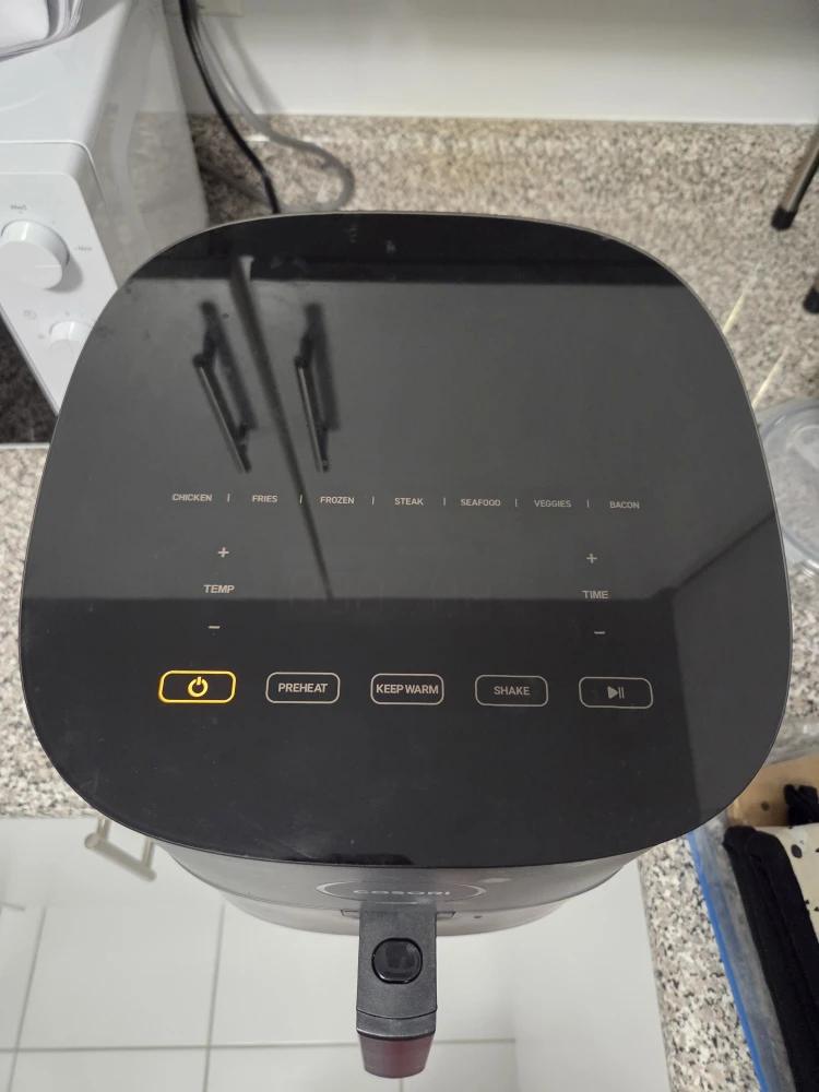 Selling a Cosori air fryer in good condition! It has a capacity of 4.7 Liters and dimensions of 27.2D x 27.5W x 30.3H Centimetres. It also has different settings such as chicken, fries, frozen, steak, seafood, veggies, and bacon.Final sale,no returns or exchanges