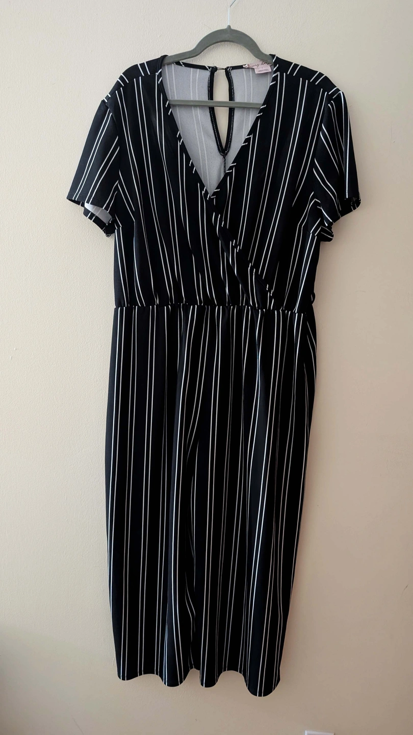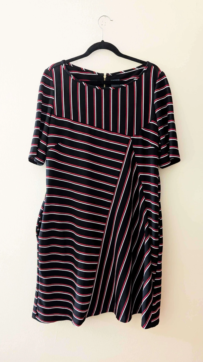 Photo 3 (Asymmetrical Striped dress with black, white, and red stripes)