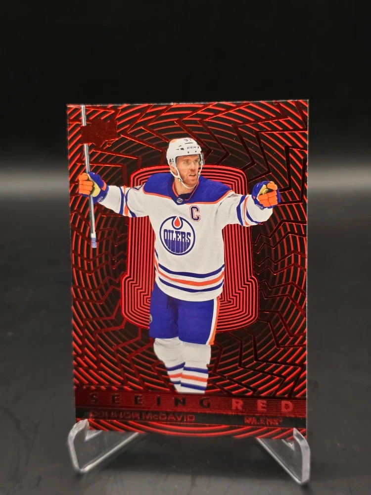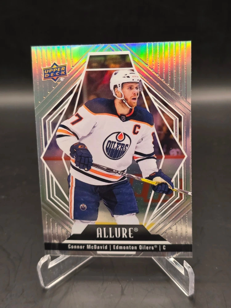 Selling a set of Connor McDavid hockey cards from the Edmonton Oilers. The cards are in great condition and feature different designs and series, including Upper Deck and Allure. A great addition to any hockey card collection!