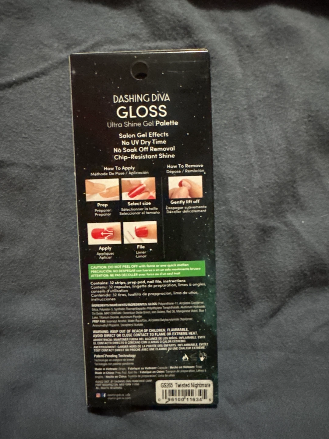 Selling a brand new Dashing Diva Gloss Ultra Shine Gel Palette! These salon gel effects require no UV dry time and offer no soak off removal with chip-resistant shine. Each palette includes 32 gel nail strips and lasts up to 14 days!