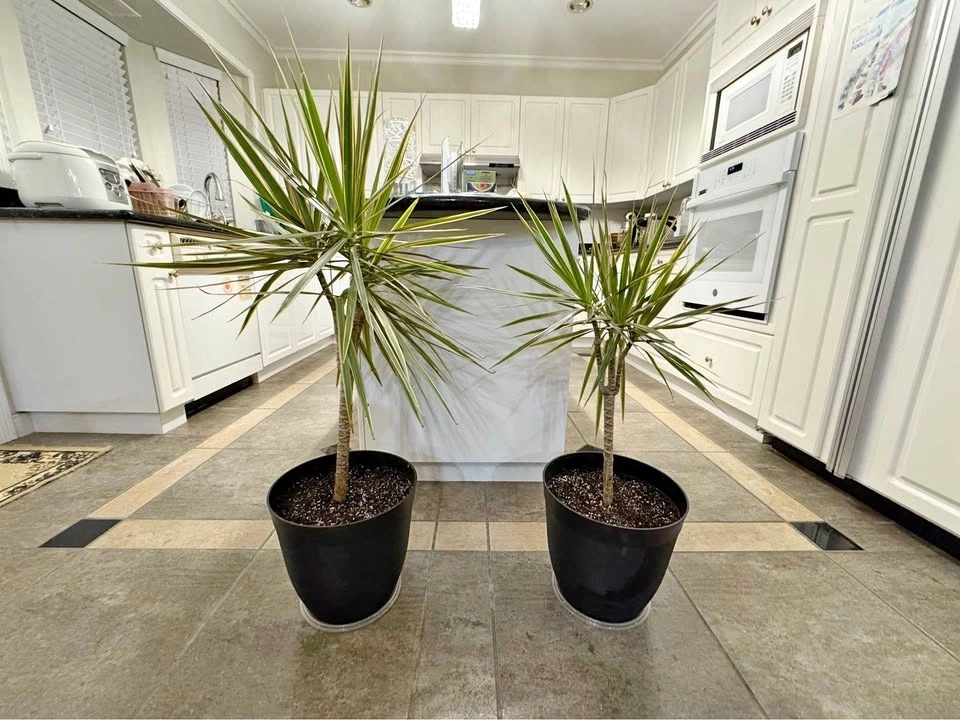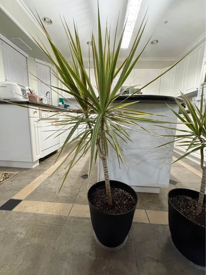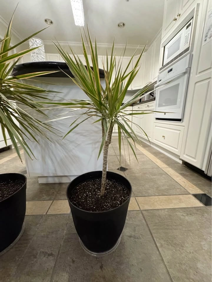 Taller plant with pot: 45.5” tall; shorter plant with pot: 37” tall