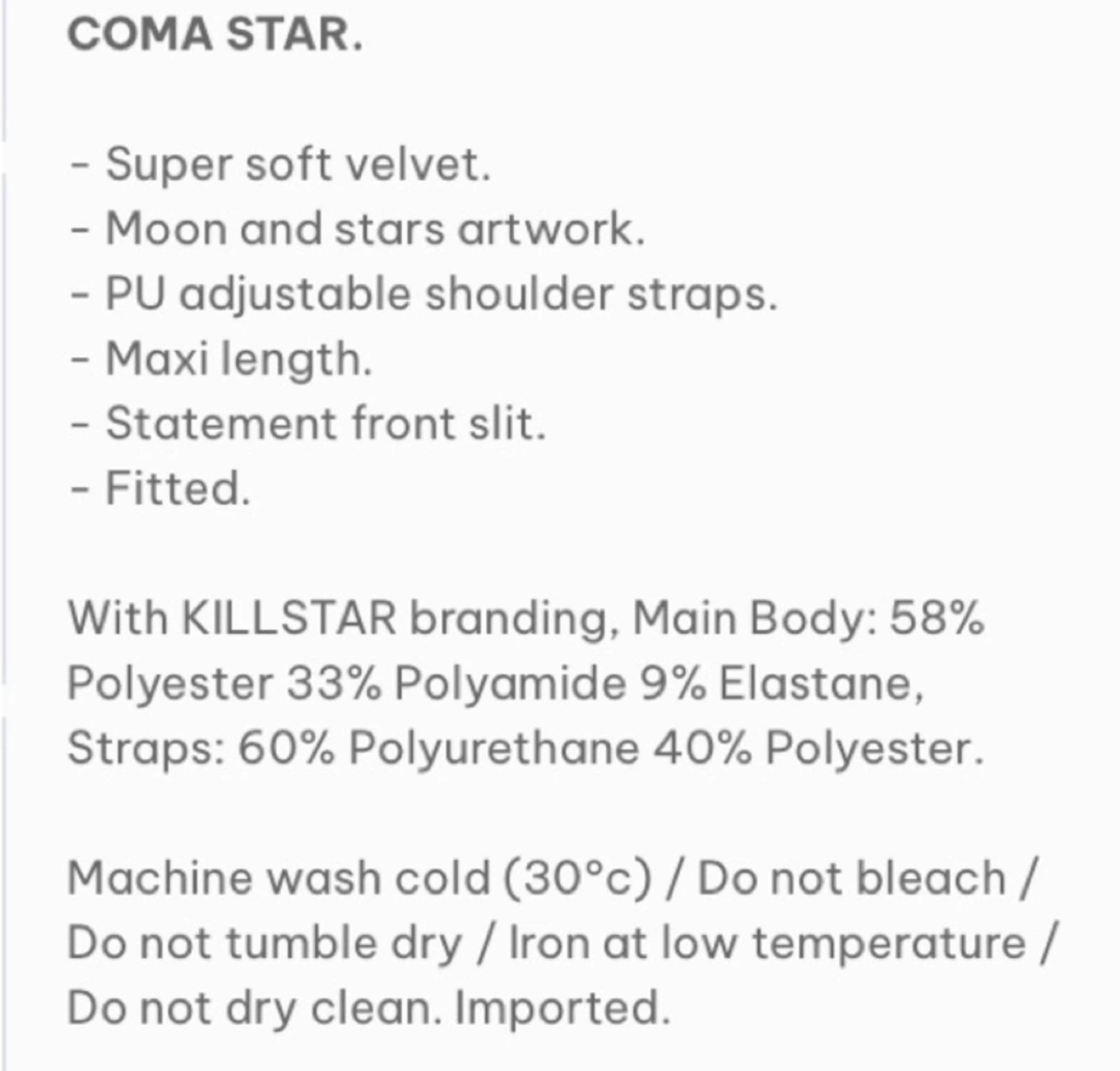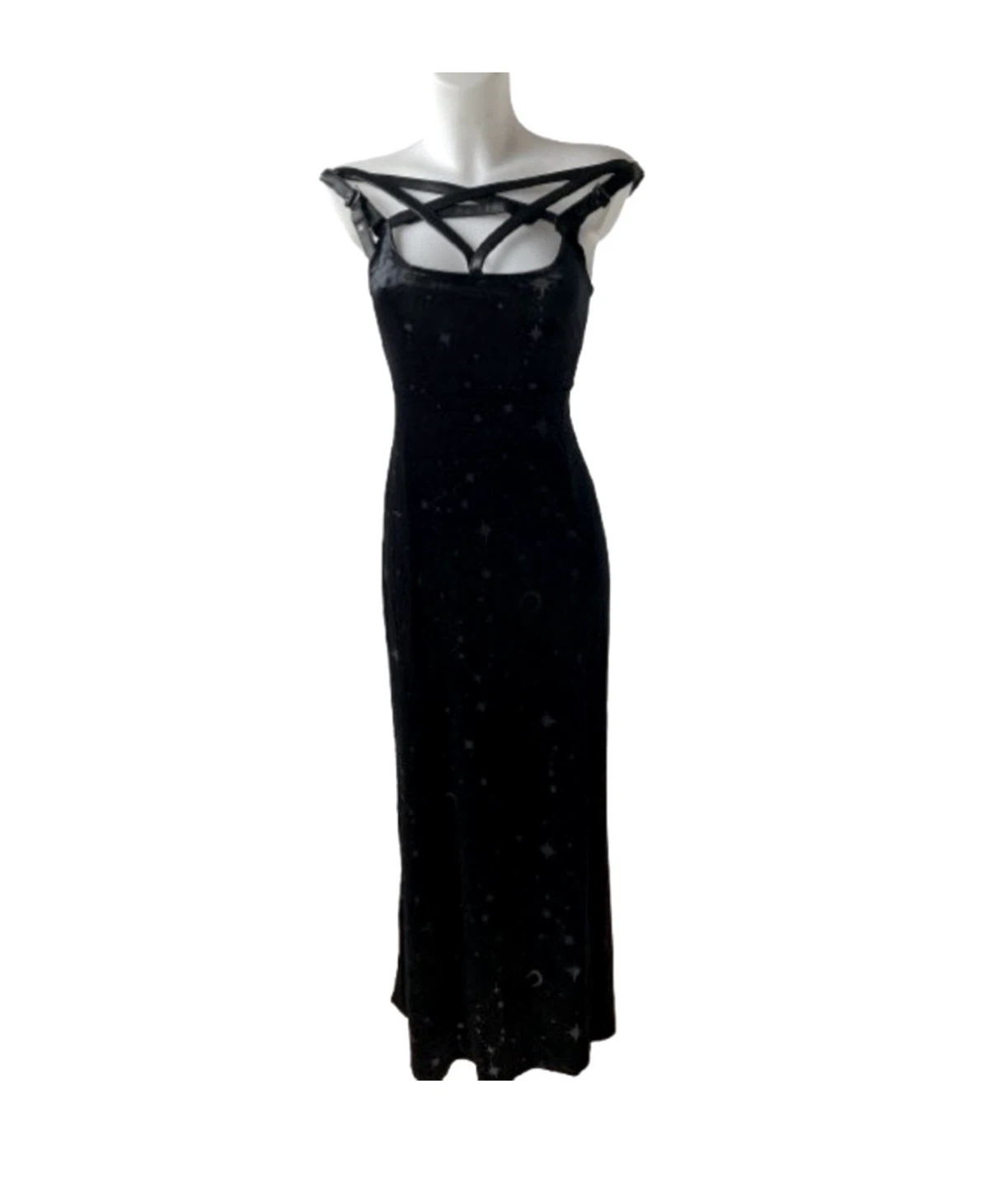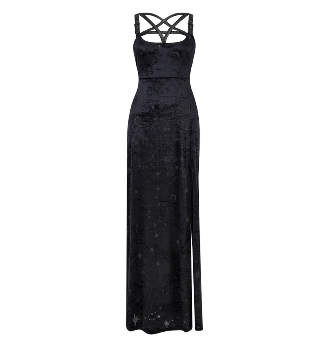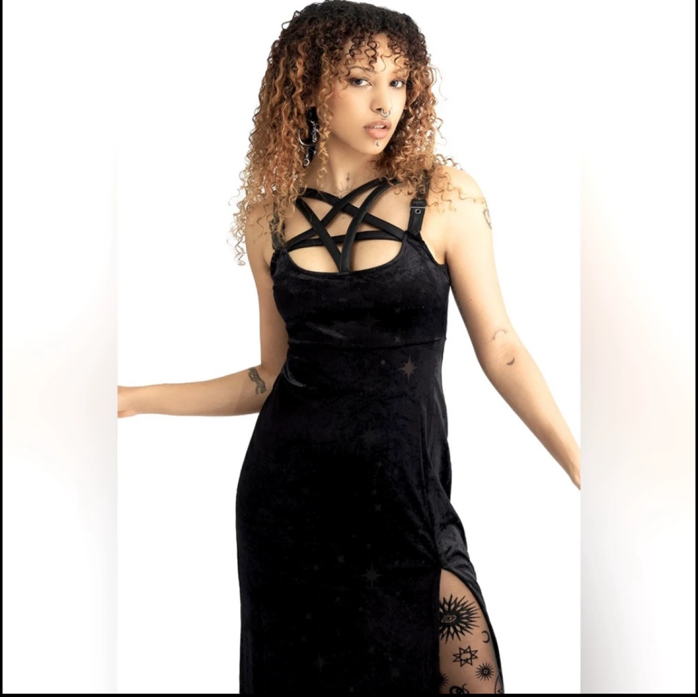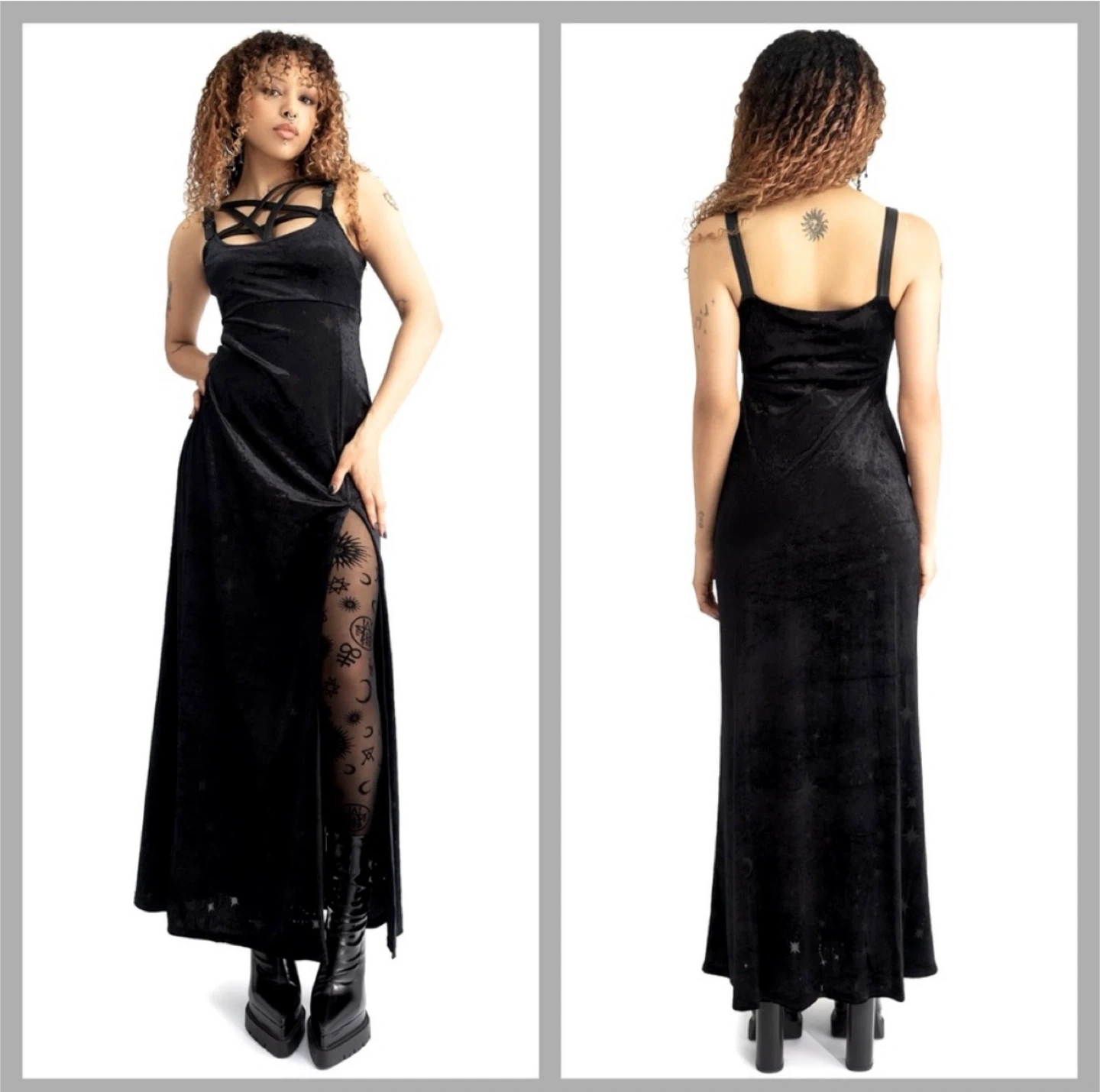 #KillStar #Cult #Goth #Gothic #Alt #Alternative #Black #MaxiDress #NWT #NewWithTags #Spooky #Evening #Fall #Winter #Party #Hostess #Cruisewear #Grunge #Vacation #Holiday #XXL #PlusSize #Slit #Fitted #ComaStar #Club #Clubbing #Dancing #Brunch #HolidayDress #CrissCrossStraps #LongDress #Dark #Sleeveless #SpagettiStraps #Romantic #DateNight #School #Collage #Fetish #KillstarMaxiDress #Backtoschool #Maxi #Dark #MaxiDress #Occult #Witch #pentagram #Celestial #moon #stars #velvet #Vampire-Goth