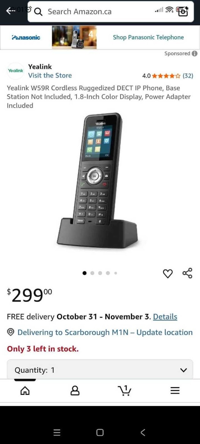1 / 41 / 4Buy & SellYealink W59R dect cordless phone (2 units)Yealink W59R dect cordless phone (2 units)$30Works perfect, doesn't come with charger, but comes with batteries. $30 for both.WHERE TO MEETCheck LocationView MapSELLERShiroThe Beaches1108 reviews0 chats·0 favorites·5 viewsSEND CHAT TO SELLERHi Shiro! I’m interested in your listing.Hi Shiro! I’m interested in your listing.Get the Karrot app to chatSign In to chat