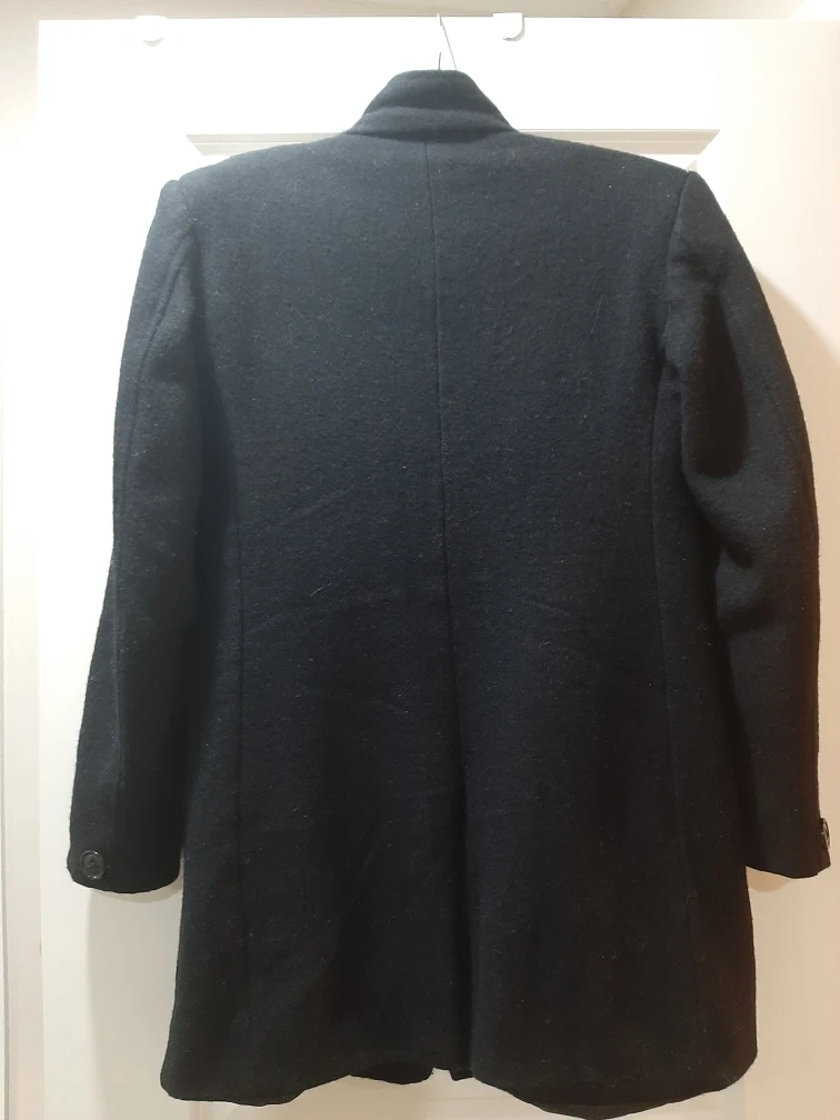 Selling a gently used black wool coat from Stardust Juke. It's a size medium and in great condition! Perfect for the cooler weather.
