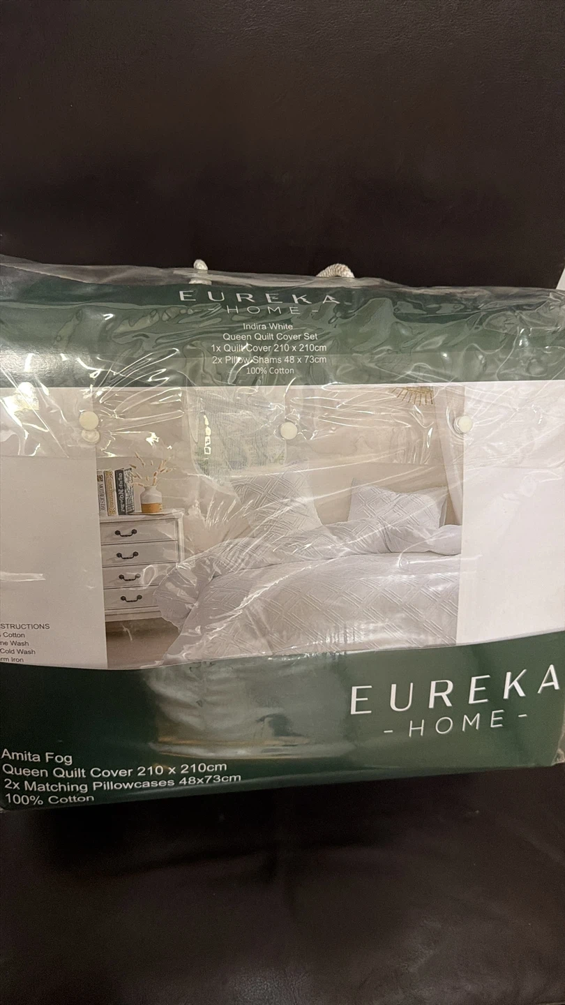 Selling a brand new Eureka Home queen quilt cover set! It's the Indira White set, and includes: