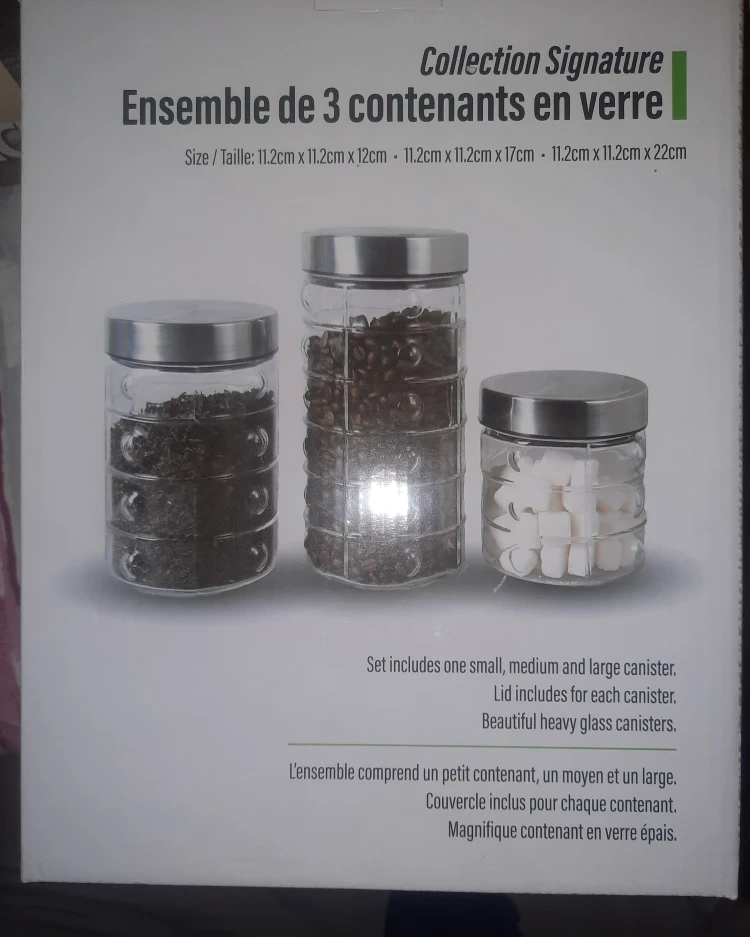Selling a set of 3 glass canisters from Signature Collection! Brand New in Box.