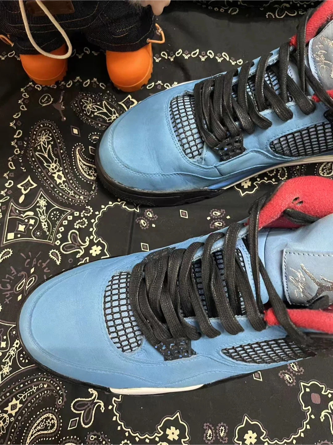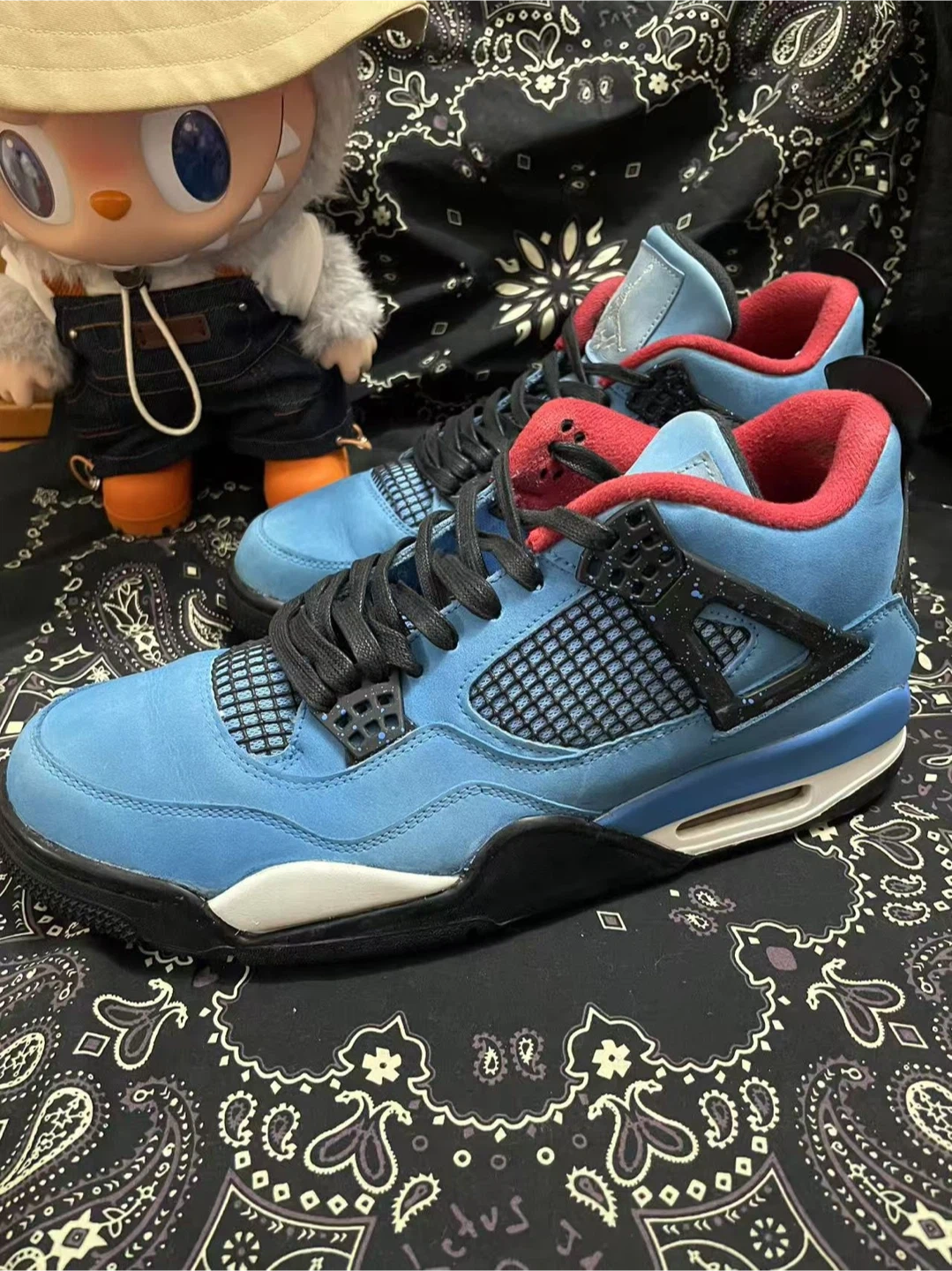 Selling a pair of Air Jordan 4 Retro Travis Scott Cactus Jack sneakers! They're in great condition and ready for a new home on your feet. The iconic design and comfortable fit make them perfect for everyday wear or adding to your collection