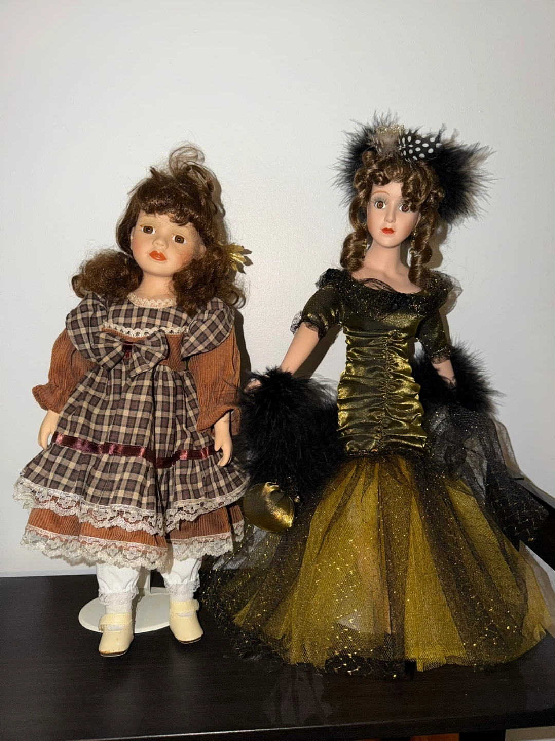 Two beautiful vintage dolls are up for grabs! They're in great shape and would make a lovely addition to any collection or a charming decorative piece for your home.