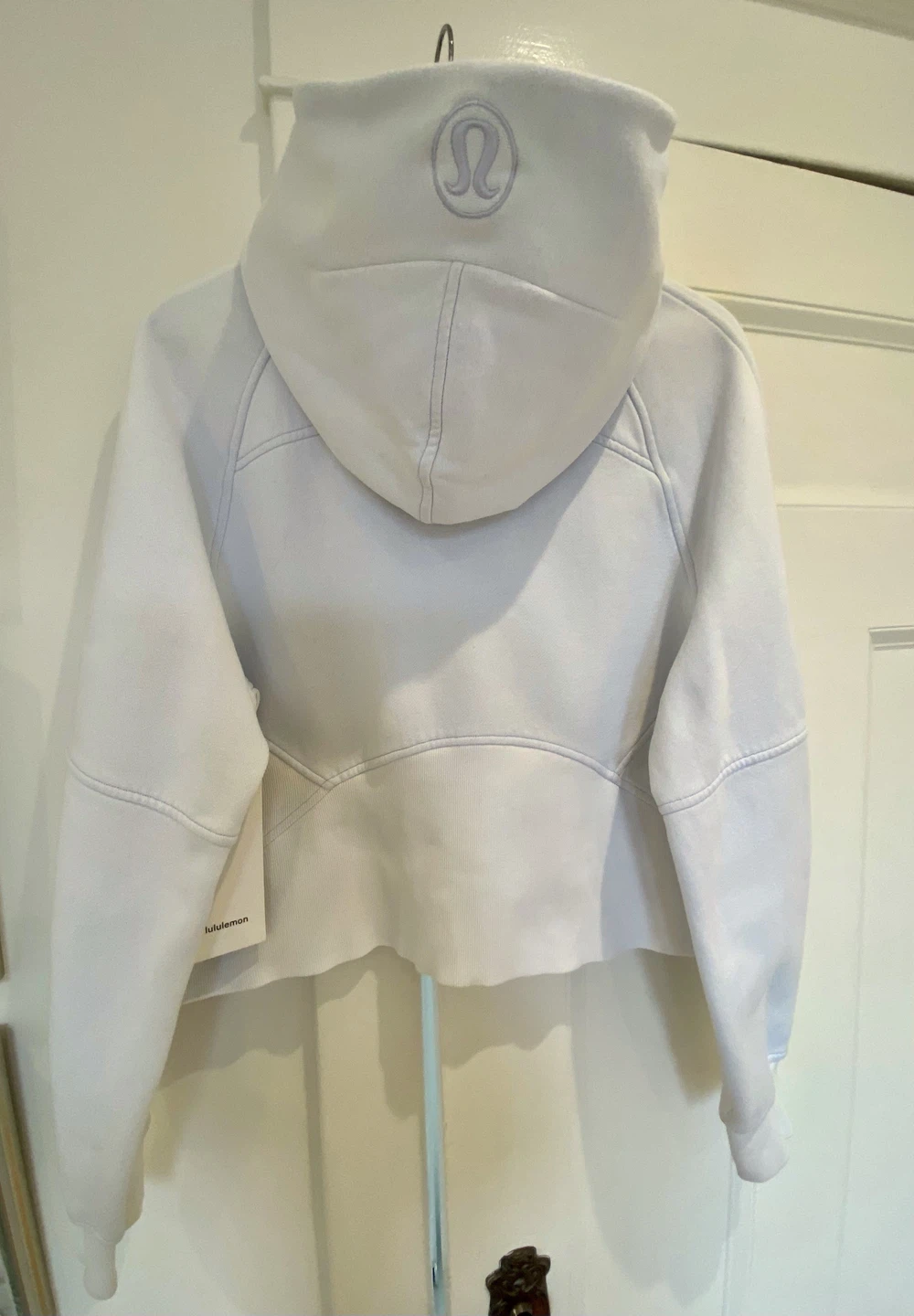 ⭐️Brand new tags on lululemon 1/2 zip Lavender hoodie⭐️ Kangaroo pocket with hidden phone sleeve Zipper garage keeps neck safe Elastic zipper pull doubles as an emergency hair tie Thumbholes on sleeves Purchased as a gift for me in Vancouver but unfortunately not my size. Light Lavender and white Size M/L $125 ⭐️Firm price /no lowballing please⭐️