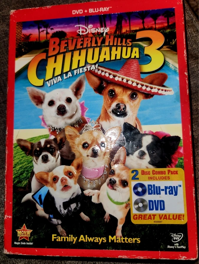 Selling a Beverly Hills Chihuahua 3 Viva La Fiesta! 2-disc combo pack that includes both the Blu-ray and DVD versions. It's a Disney movie, so you know it's family-friendly! Great value! Pickup Only, Unless you are within walking distance from near intersection of Oxford and Gammage Street.