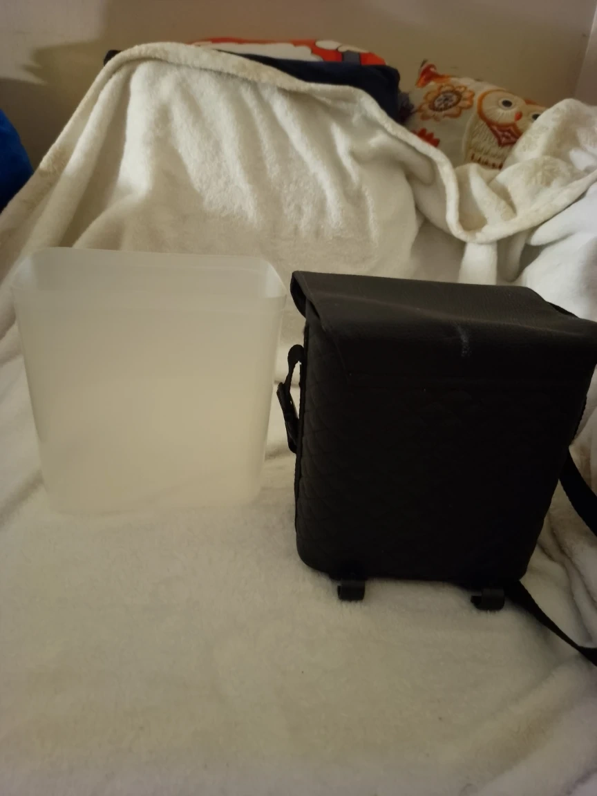 I'm selling a black insulated lunch bag that comes with a clear container. It's in great condition and perfect for taking your lunch to work or school. The bag is insulated to keep your food cold or warm, and the container is great for packing leftovers or snacks
