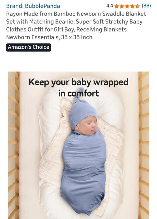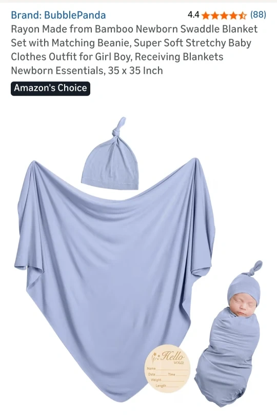 This is a brand new Bubble Panda Rayon Made from Bamboo Newborn Swaddle Blanket Set with Matching Beanie. It's super soft and stretchy, perfect for your little one! The set is 35 x 35 inches and can be used as a sleeping blanket, nursing cover, or stroller cover