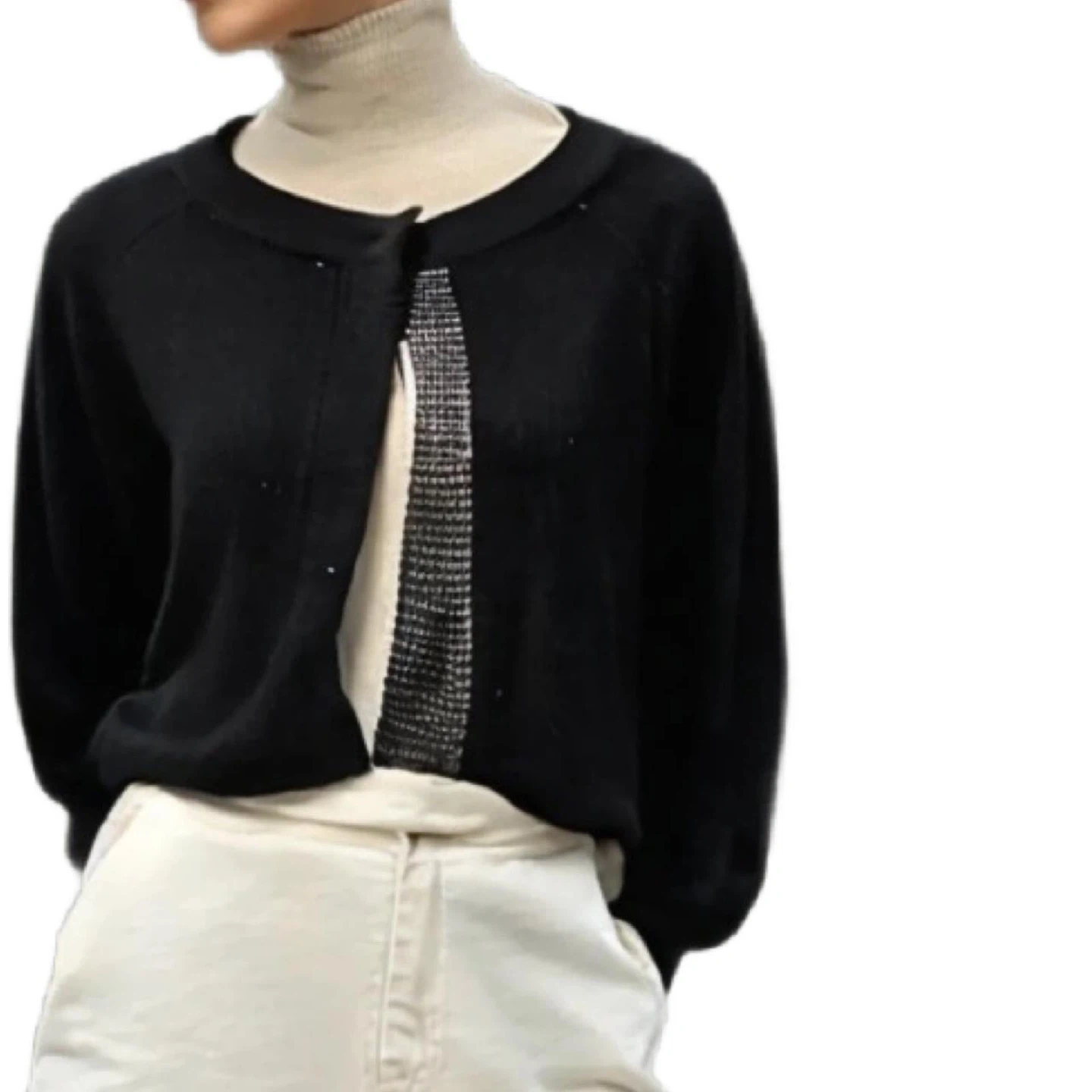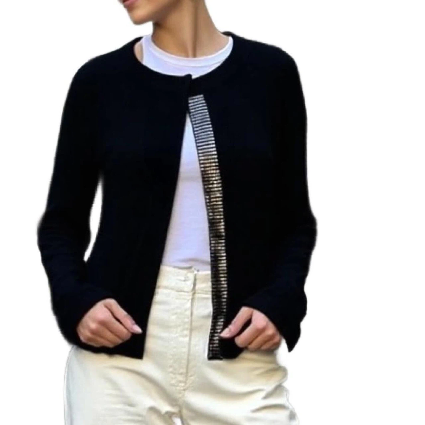 Black Sequin trim 100% cashmere cardigan, open front by Holt Renfrew