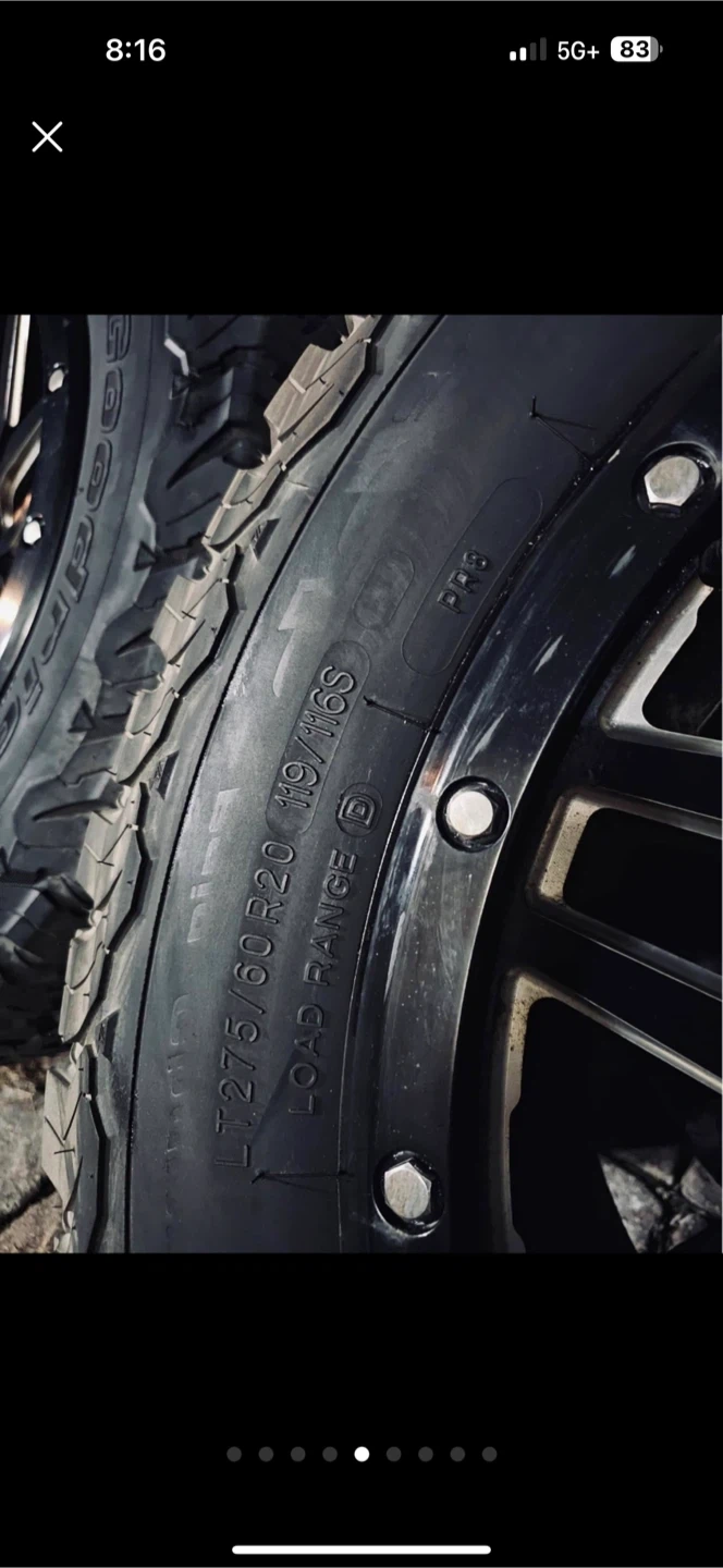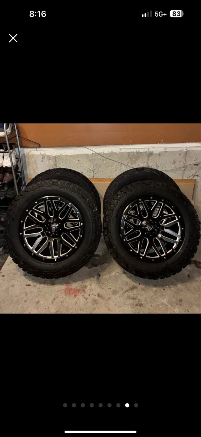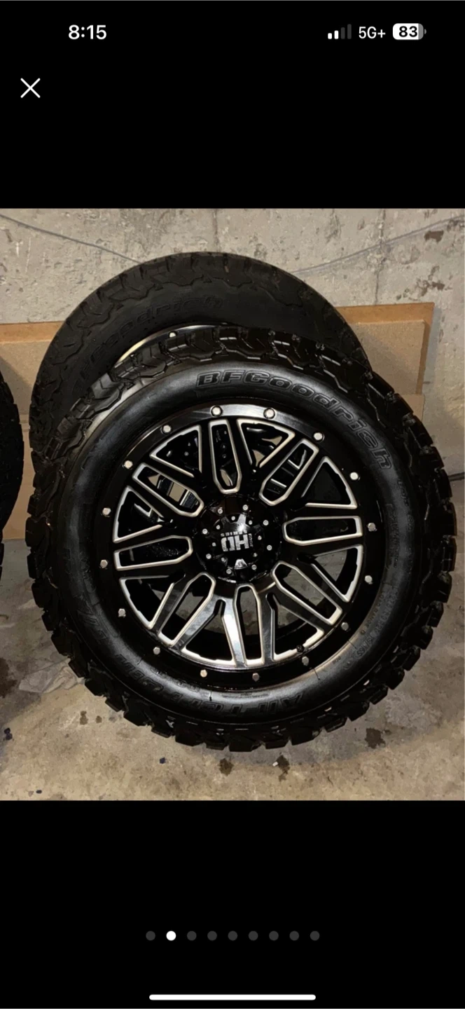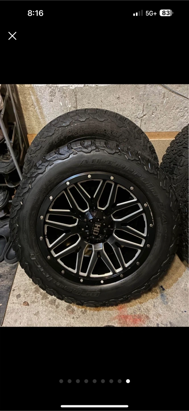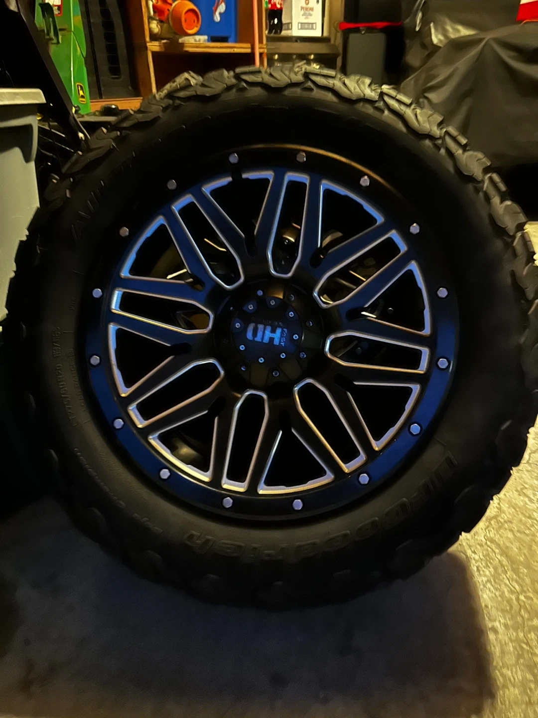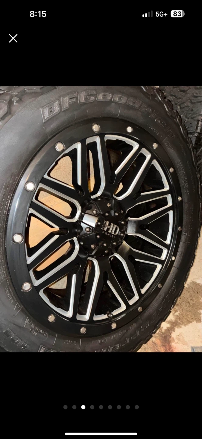Selling a set of four HD Wheels tires. The size is 275/60R20. They are in almost new condition and ready to be used on your ford , gm , dodge Truck or suv the bolt pattern for these rims are