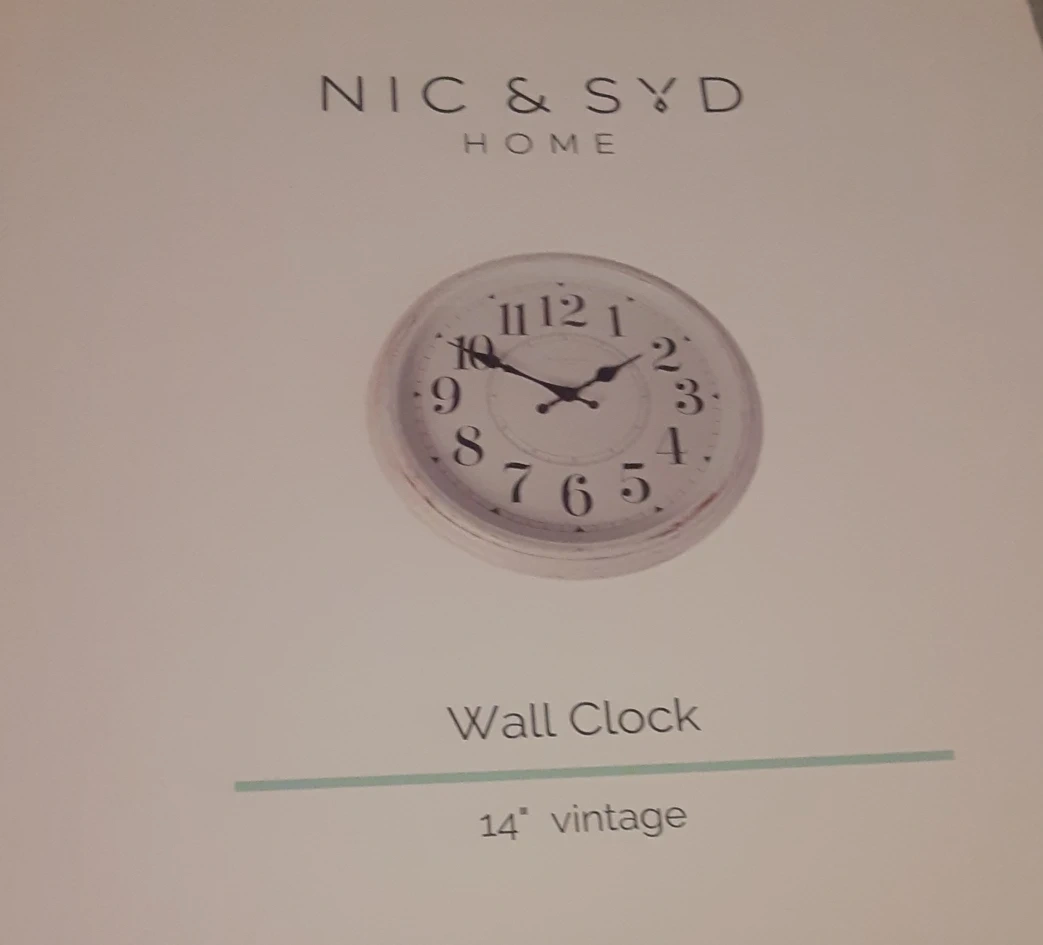 I'm selling a NIC & SYD Home wall clock. It's a 14" vintage style clock. The classic design and distressed finish add charm to any room in your home. It comes in its original box!
