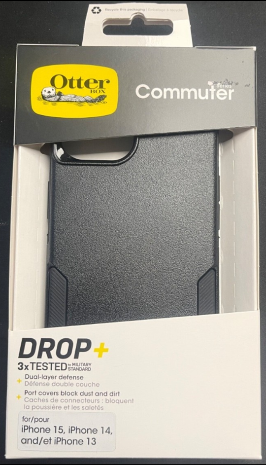 Brand new Otterbox Commuter series phone case, still in its original packaging! It's designed to fit iPhone 15, iPhone 14, and iPhone 13 models. This case offers dual-layer defense and port covers to keep out dust and dirt. The box is included!