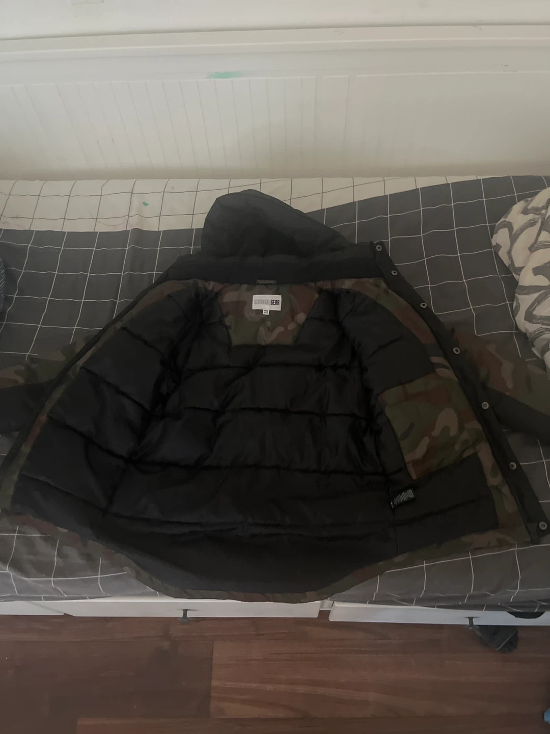 Selling a Double Bear puffer jacket with a cool camo pattern! It's in great condition and perfect for staying warm this winter