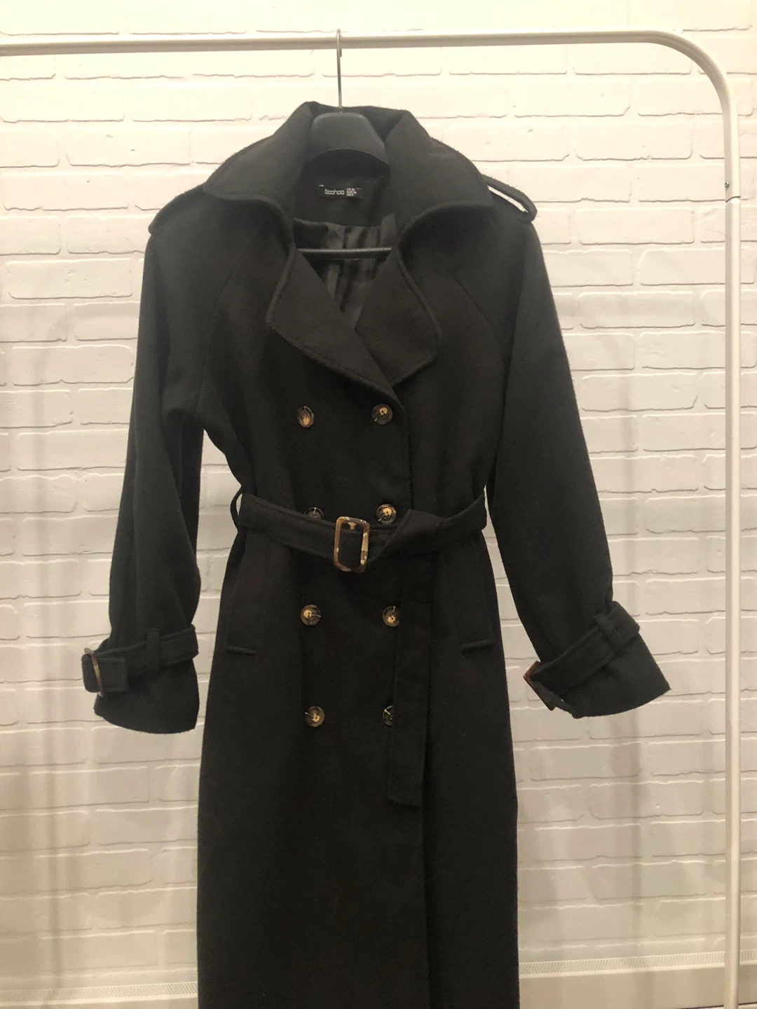 Selling a stylish black trench coat from Boohoo, an UK brand. It's a size US 6, which is a UK 10 or EUR 38 - very soft in touch with a light cashmere feel. Made in Italy!