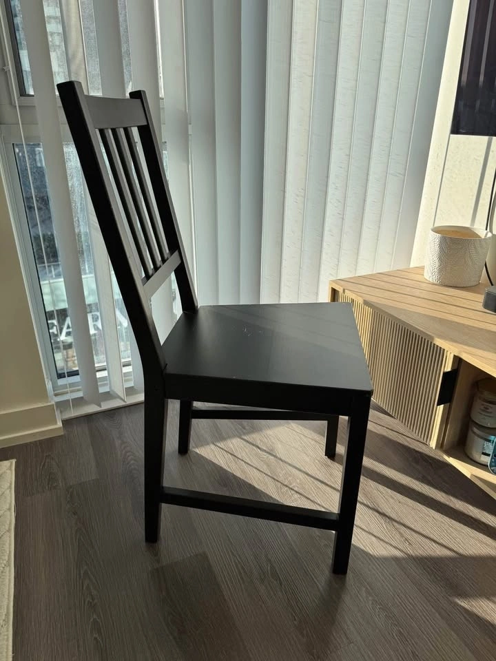 Selling 1 IKEA Stefan chair. It has a small dent on the seat (see picture), but it’s still sturdy and fully usable. Simple, lightweight, and great for dining, desk use, or as an extra chair.