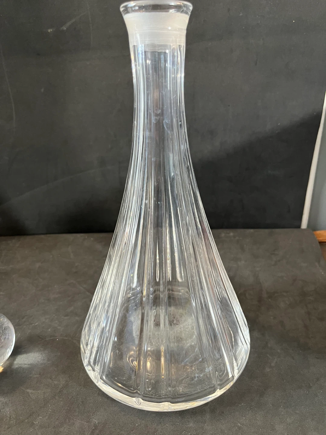 Here's a lovely clear glass decanter with a stopper! It's in great condition and would look great in any home. It's perfect for serving your favourite drinks.