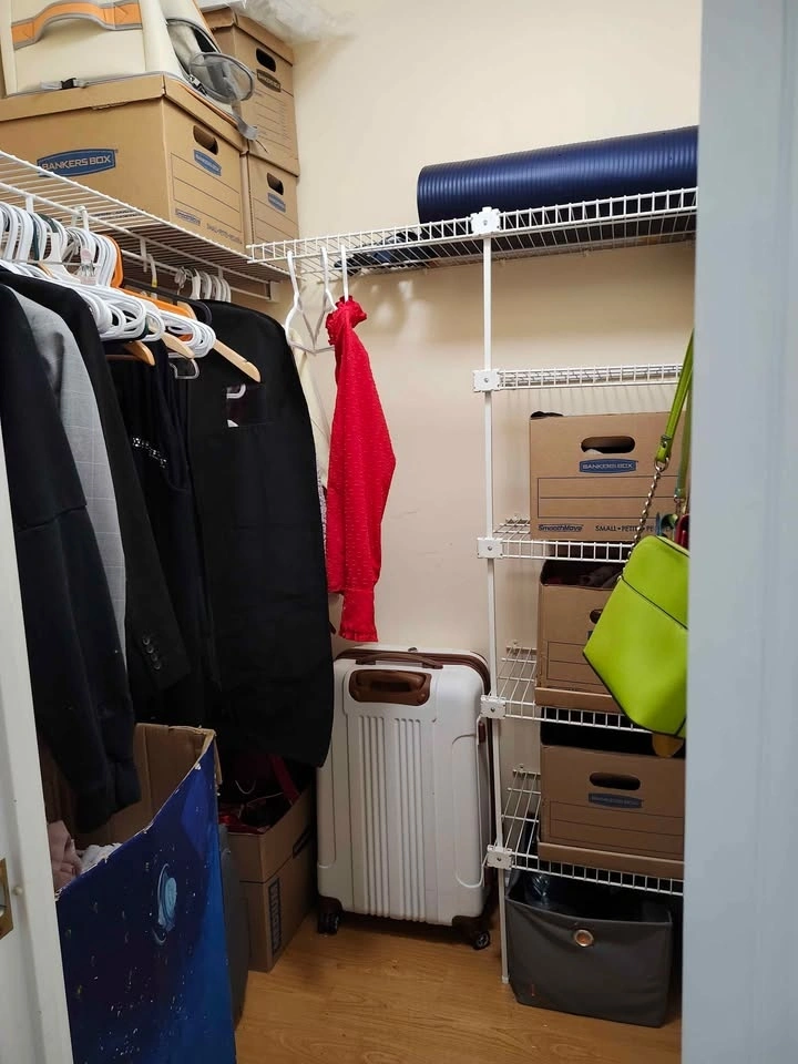 The room is clean, bright, and comfortable, with its walk in closet and a private bathroom.