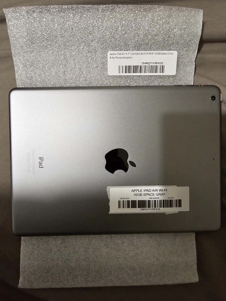 Selling an Apple iPad Air 9.7" (1st Gen) A1474 WiFi 16GB in Space Gray! It's in great condition and comes with its original packaging.