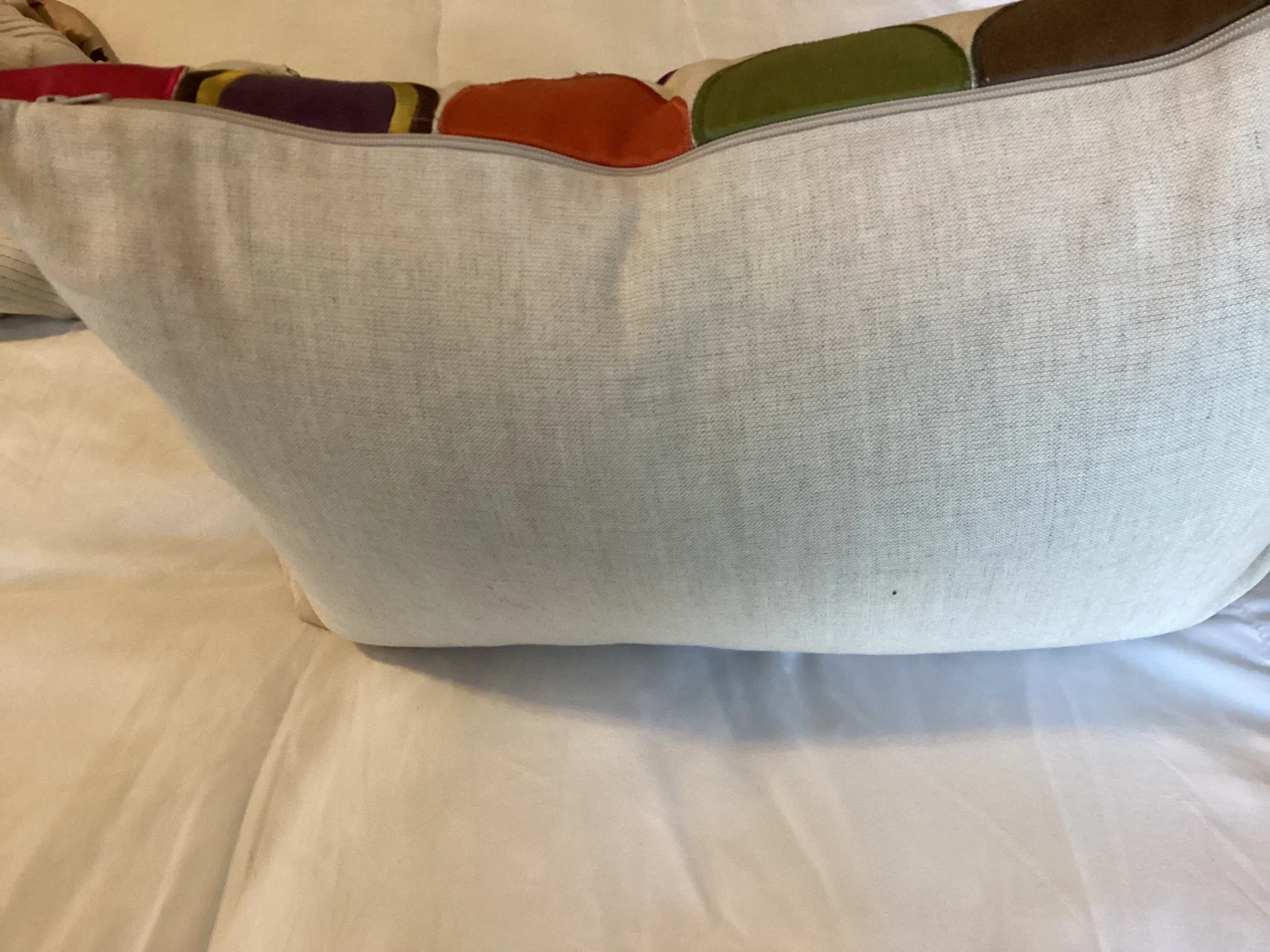 Selling a set of two decorative throw pillows! They feature a colourful circle design on one side and a plain cream colour on the other. They're in great condition and would add a fun pop of colour to any room clean environment no pet no smoking.