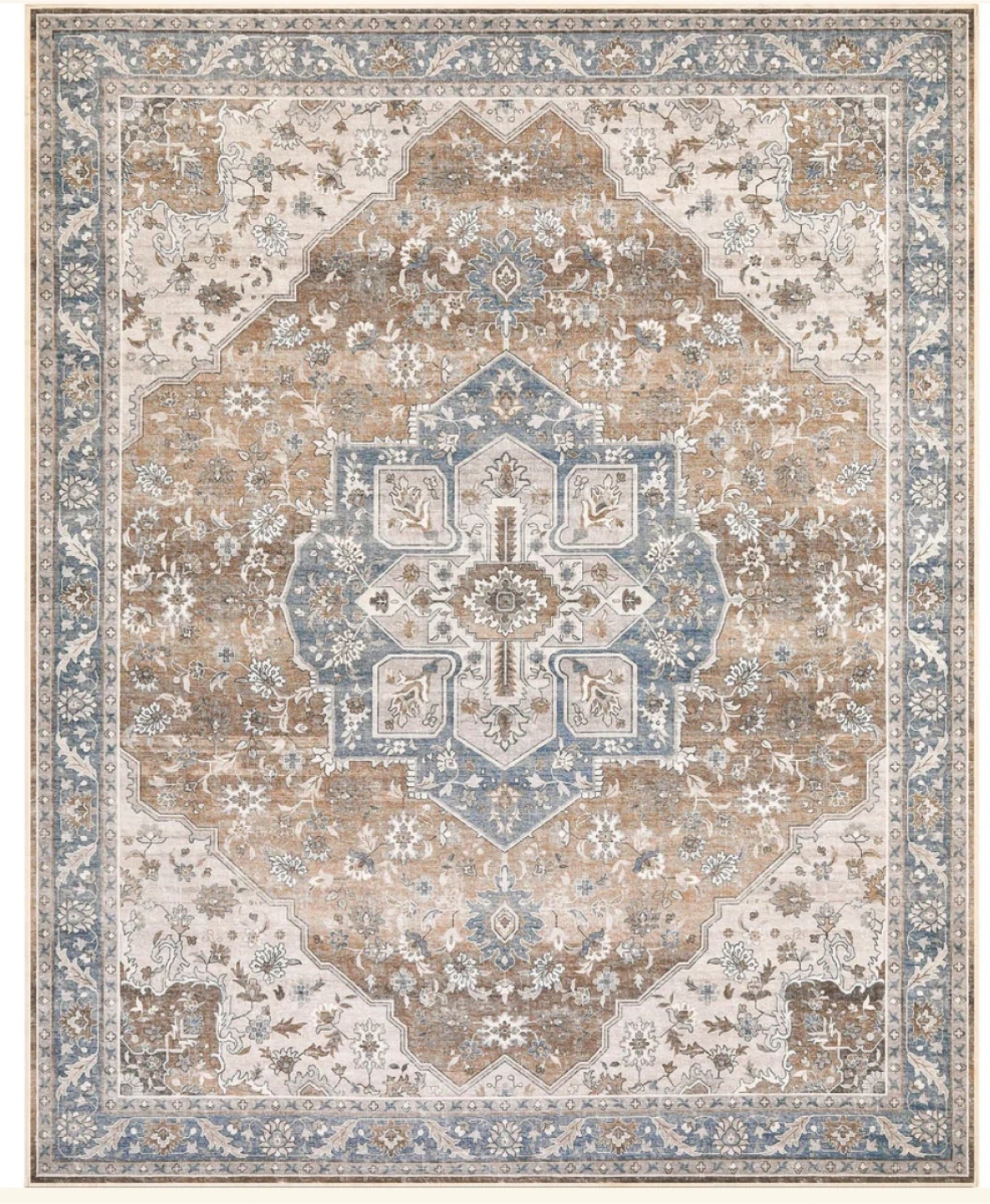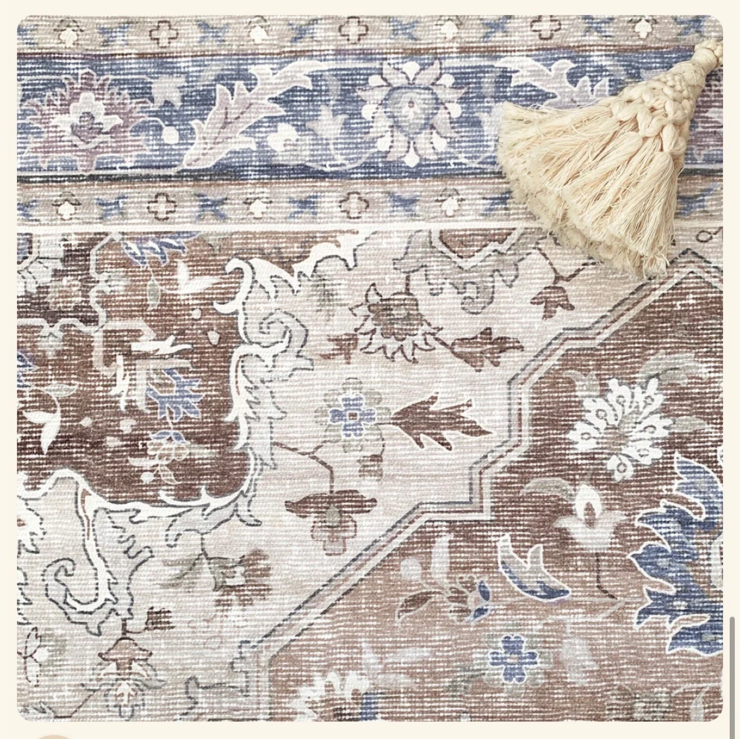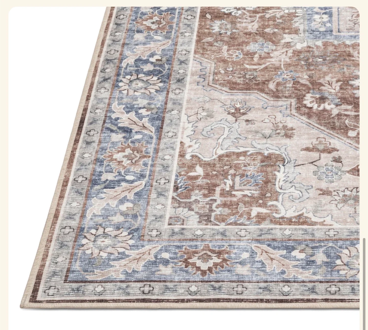 Selling an Amara area rug in coral and blue tones. It's in great shape and would look lovely in any living space! The rug features a beautiful design that adds a touch of elegance to any room