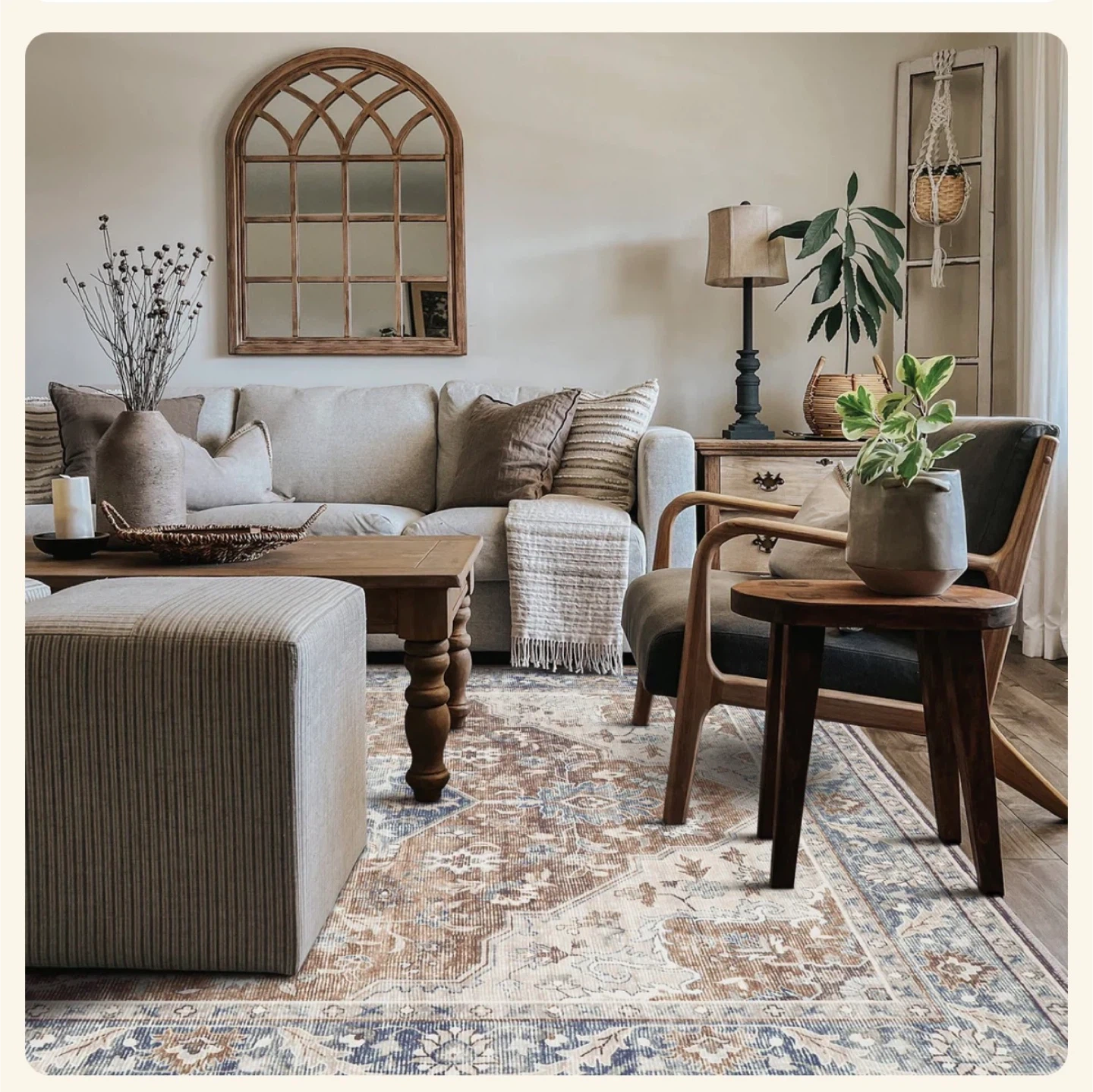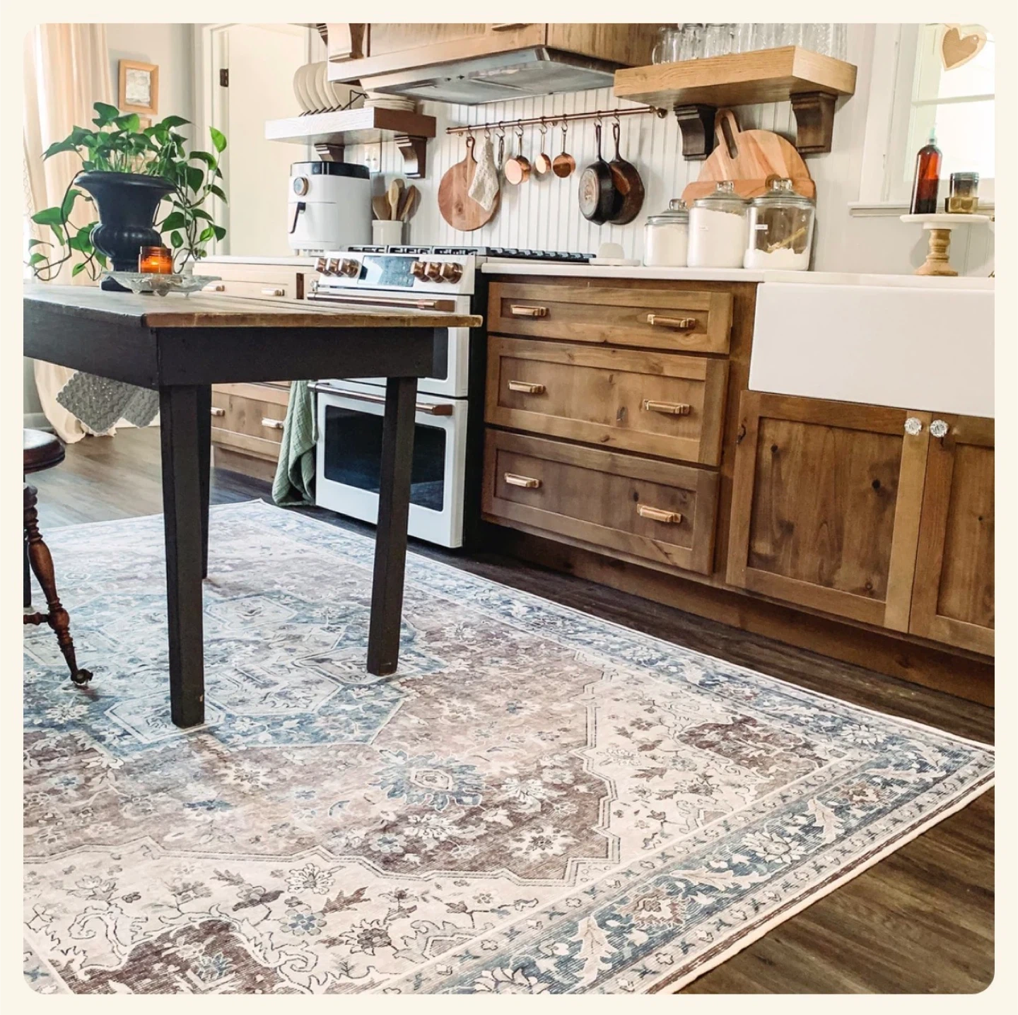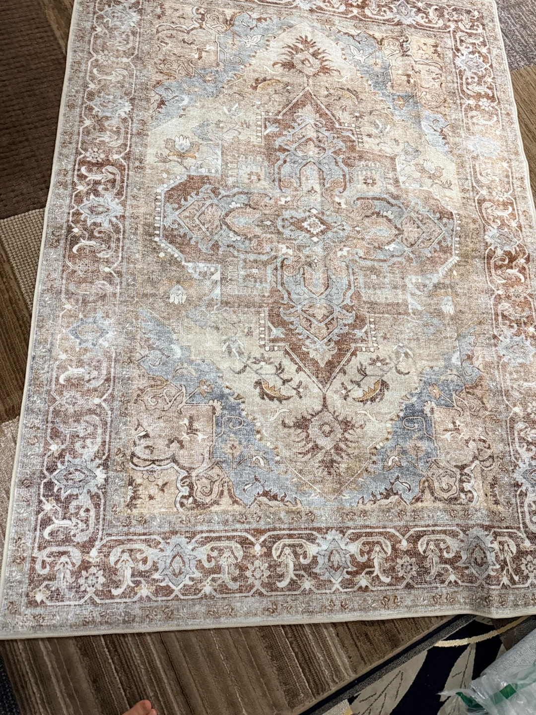 Selling an Amara area rug in coral and blue tones. It's in great shape and would look lovely in any living space! The rug features a beautiful design that adds a touch of elegance to any room