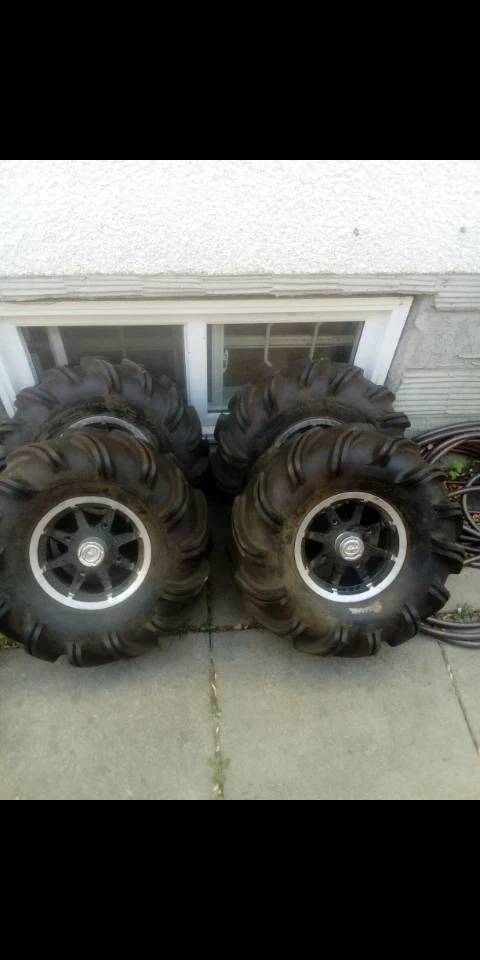Maxzilla 28/9.5-12 ATV/ UTV Wheels for sale $400 OBO.brand new.Great deal.they sell retail $280 each.$1120 for four.so your saving $720.they come with rims and I can deliver in Edmonton area for free.