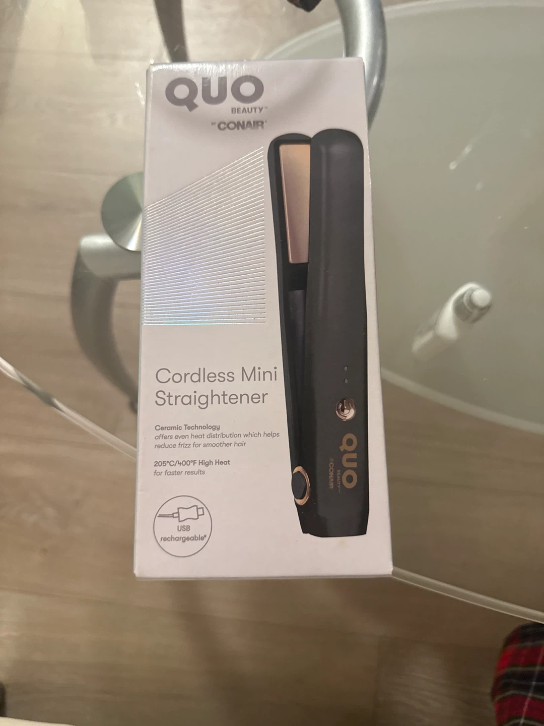 NEW never used cordless Quo hair straightener. comes with a gift new in a box cube-shaped digital alarm clock. Perfect for your bedside table or desk. Works with a cord or batteries.