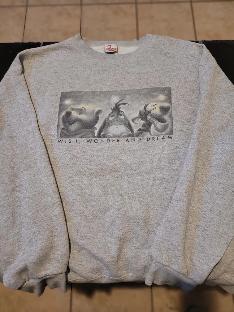 Just in time to keep you warm for the winter!βοΈβοΈ This Disney store, Winnie the pooh , Eeyore , Tigger " Wish, Wonder and Dream " Grey XL crewneck sweat shirt is in excellent condition and ready to wear or a nice Christmas gift π