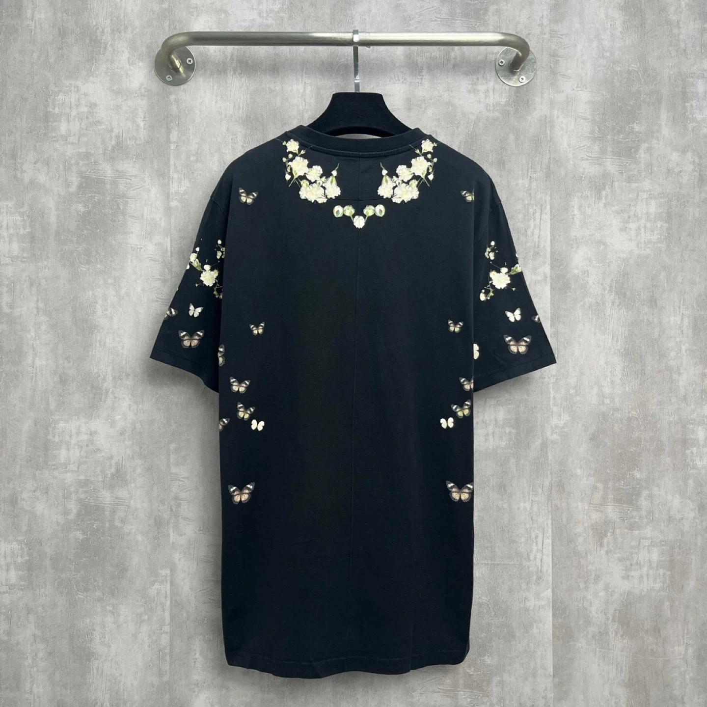 Selling a Givenchy T-shirt with a unique graphic print. This black tee features a striking design with flowers and butterflies. It's in great condition and ready for a new wardrobe!