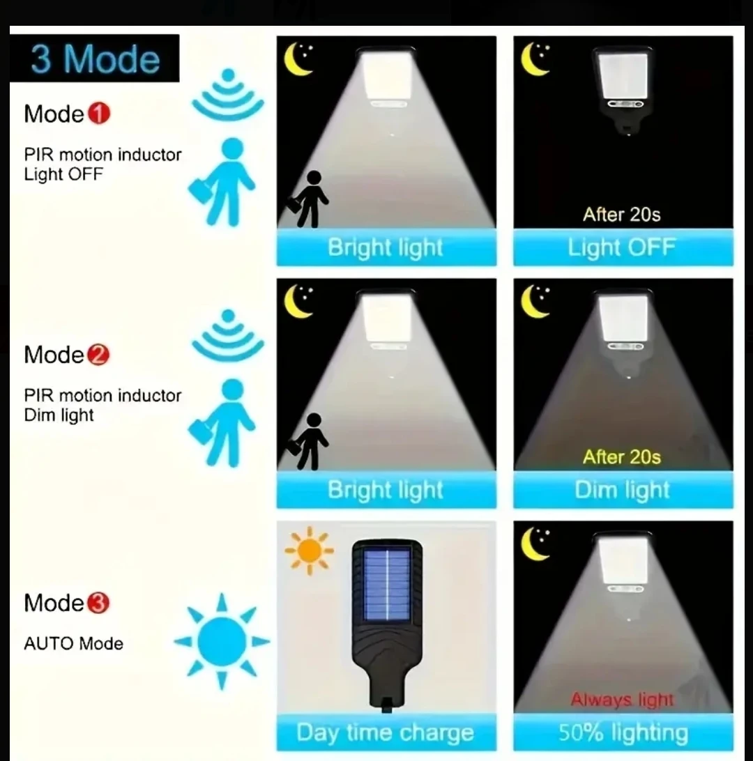 Mode 3: Under Sunlight, not light up, but at night, Always light up at 50% lighting.