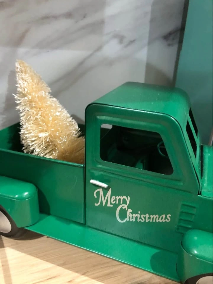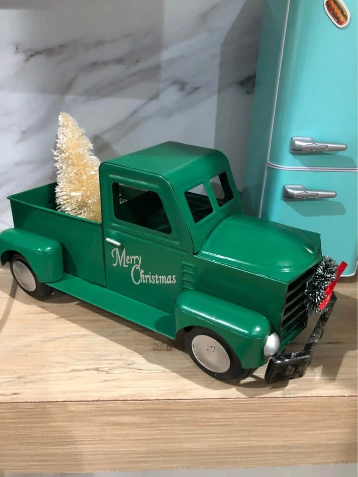 Charming Green Vintage Metal Truck with Christmas Tree - Holiday