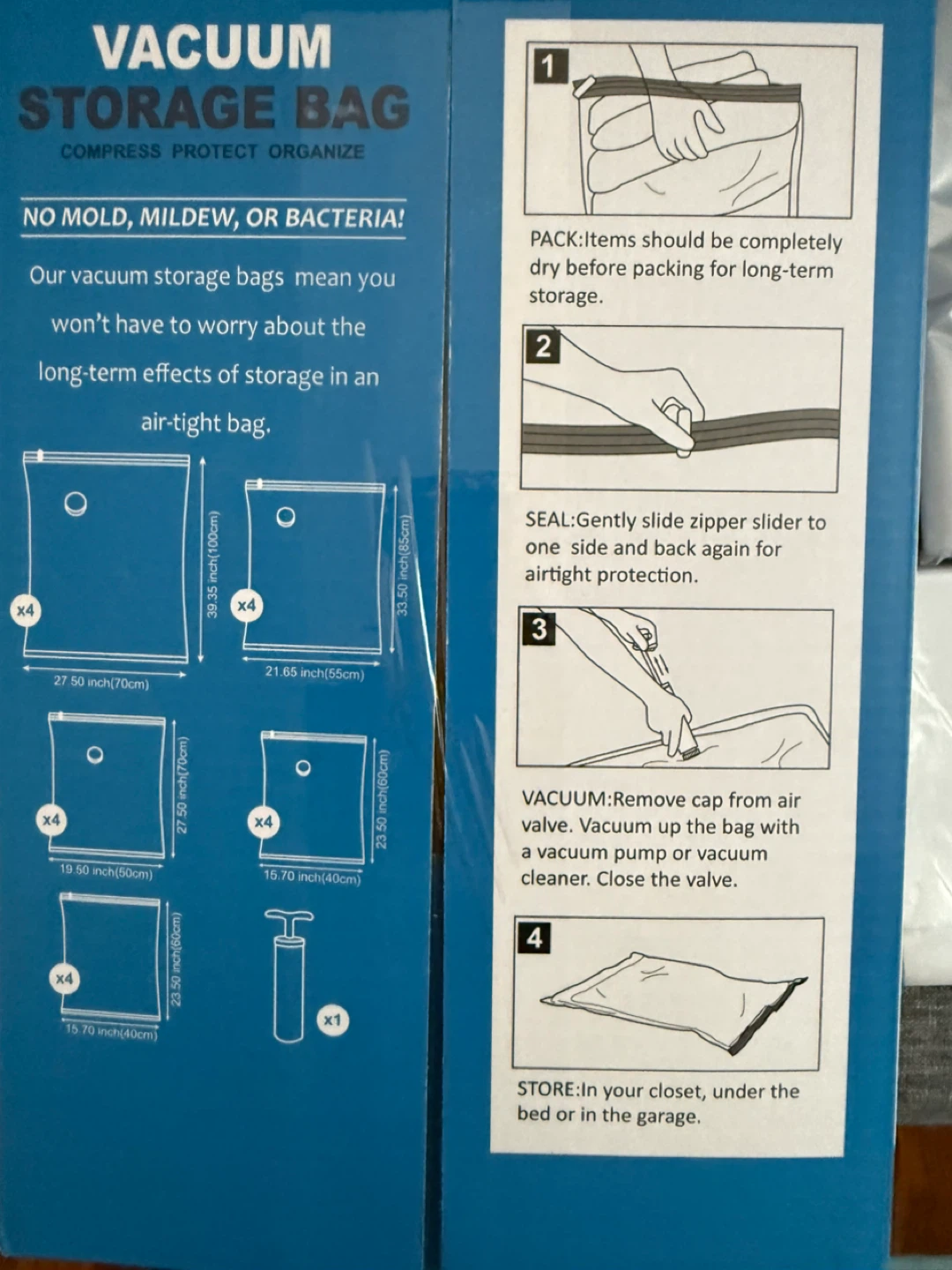 They're perfect for compressing and protecting your items from mold, mildew, and bacteria. Create up to 80% extra storage space!