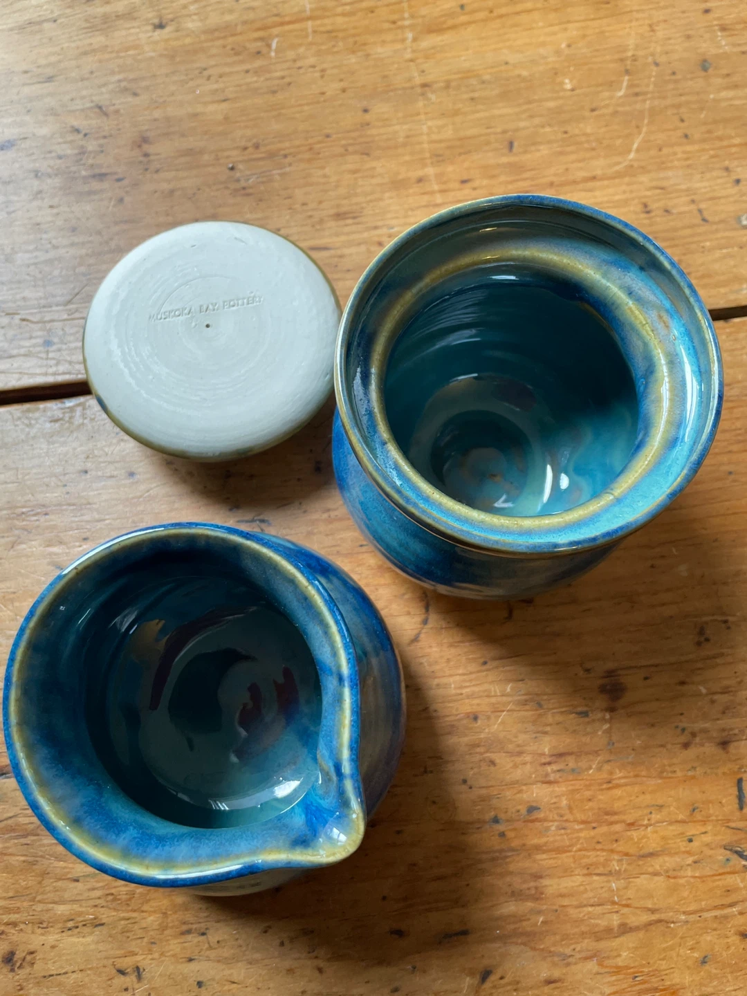 Selling a beautiful creamer and sugar bowl set from Muskoka Bay Pottery! The set features a stunning blue glaze with unique variations in colour and texture. Perfect for adding a touch of handmade charm.