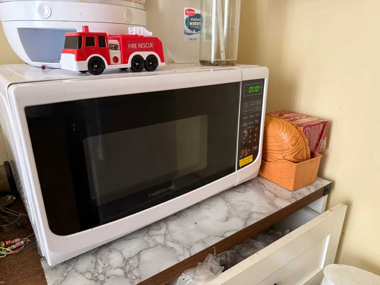Selling a Farberware microwave oven in white. It's in good working condition and ready for a new kitchen! Perfect for quick meals and reheating leftovers. It has a variety of preset cooking options for convenience. The microwave is easy to use and clean