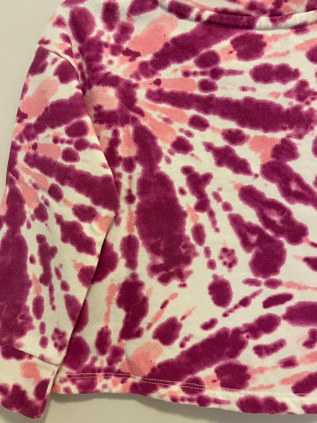 Cute tie dye long sleeve shirt in size XS! The colours are a mix of pink and purple on a white background. It's in great condition and ready for a new owner!