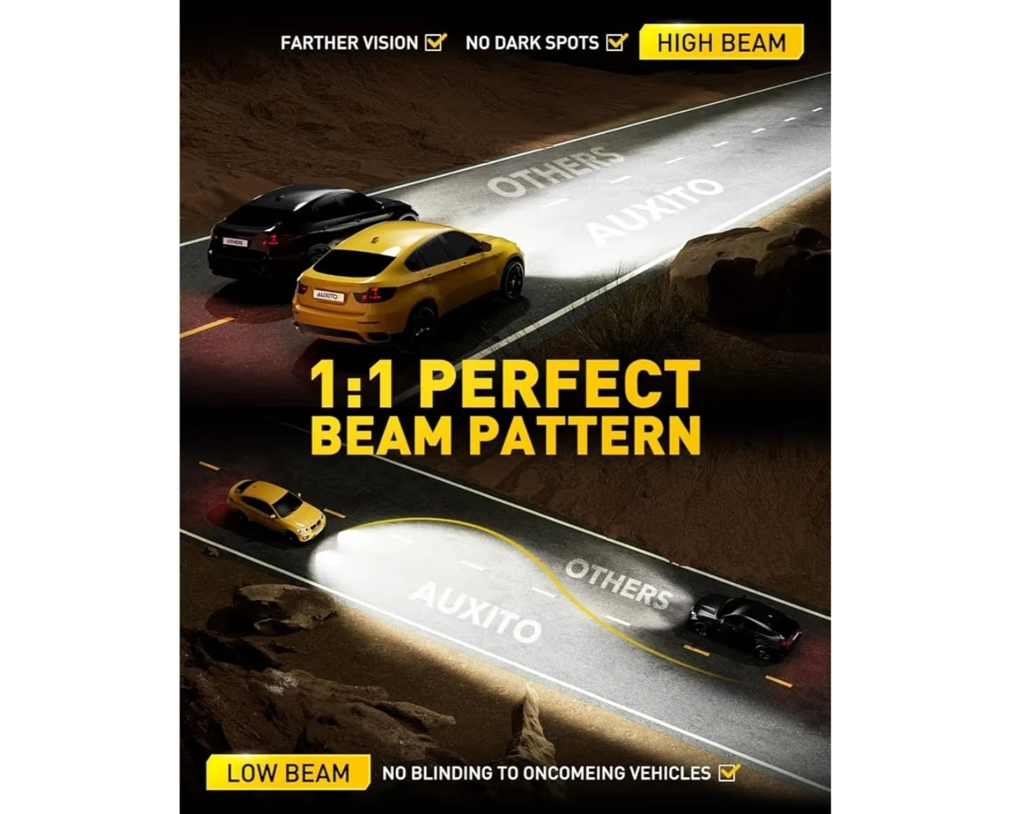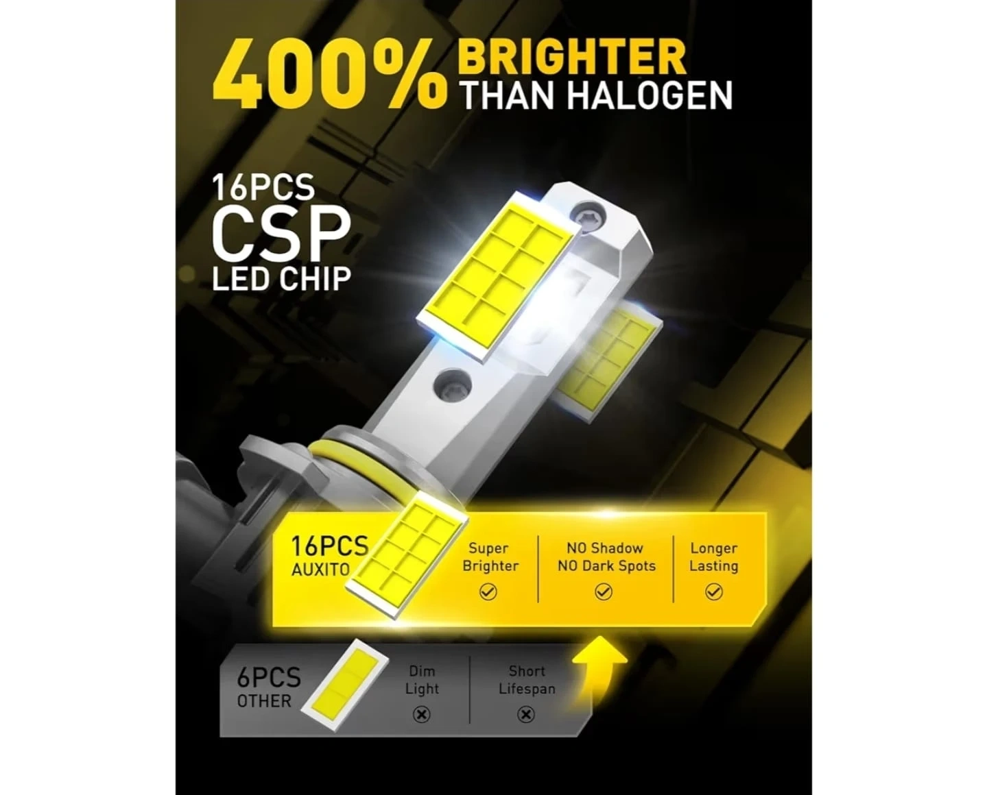 I'm selling a brand new set of AUXITO 9006 LED Headlight Bulbs. These bulbs are 400% brighter than halogen lights and have a 6500K white wireless LED headlight conversion kit. They're designed for HB4 9006 low beam, fog lights, DRL, and direct install plug and play. They also feature a 1:1 perfect beam pattern and are CANBUS-ready, meaning no dark spots or flickering!