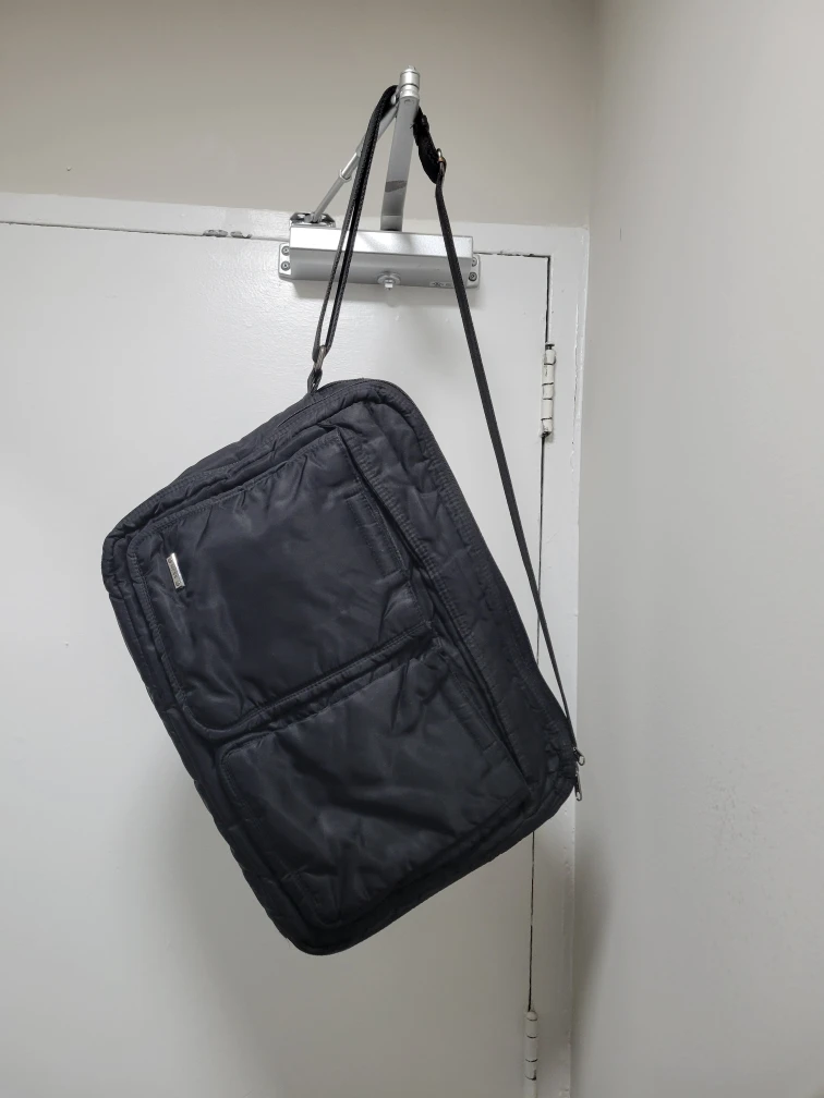 Here's a black shoulder bag from MEXX. It's in good condition and ready for a new owner. The bag has a quilted design and a long adjustable shoulder strap.