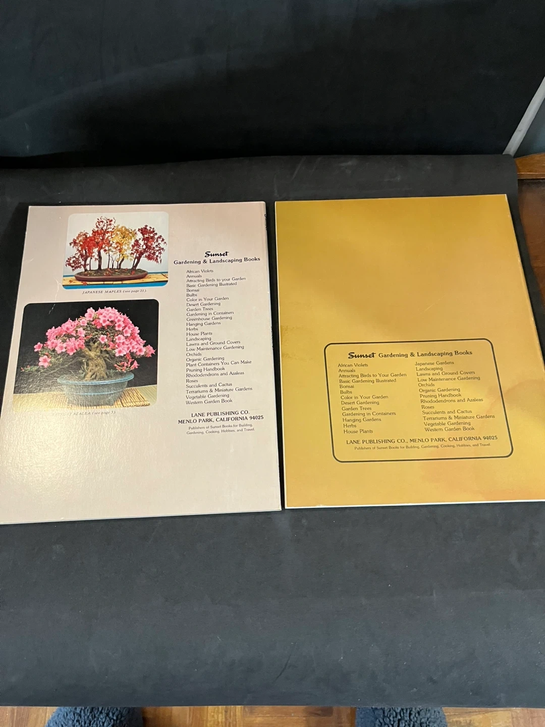Selling two vintage books: Bonsai Culture and Care of Miniature Trees. These are Sunset Gardening & Landscaping Books. Great for anyone interested in learning more about bonsai!