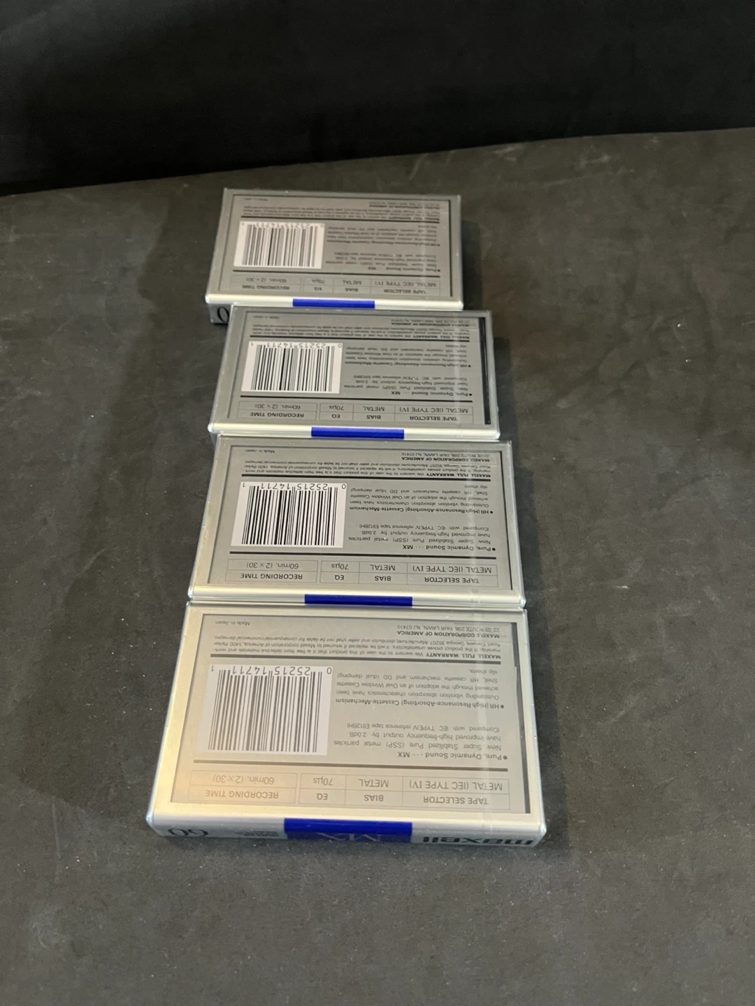 Selling four Maxell MX 60 metal position audio cassette tapes. They're still sealed in their original packaging and ready for your listening pleasure!
