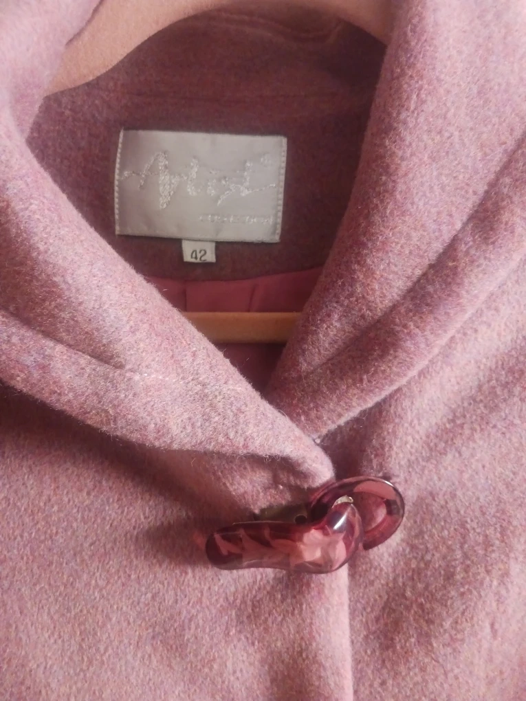 Here's a cute Artist cape coat in a lovely shade of pink! It's made from a wool blend and is a size 42. Perfect for adding a touch of elegance to your outfit