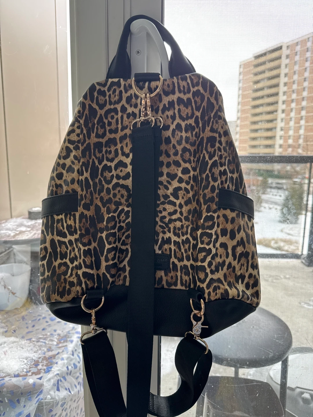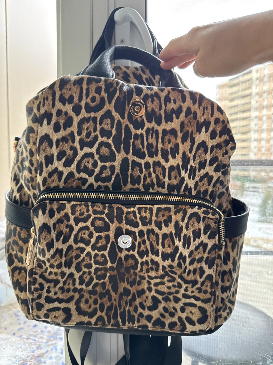 Selling a Like Dreams backpack in a fun leopard print! It features black accents and a zippered front pocket. Perfect for adding a bit of flair to your everyday look