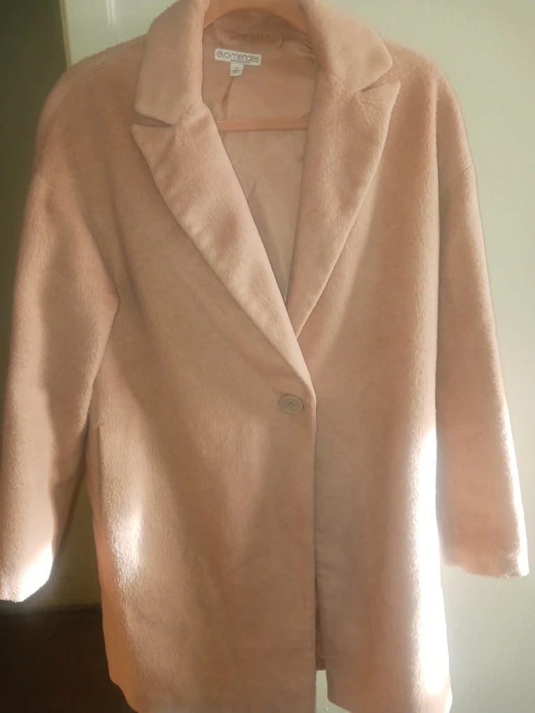 I'm selling an Eva Mendes coat in a blush pink color. It's a size small and in great condition! Perfect for layering or wearing on its own
