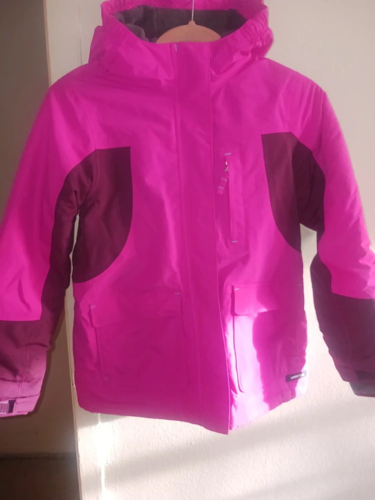 Lands' End girl's winter jacket in pink and maroon color block. Size medium 10/12. Great for keeping your little one warm and cozy during the cold months! Never used