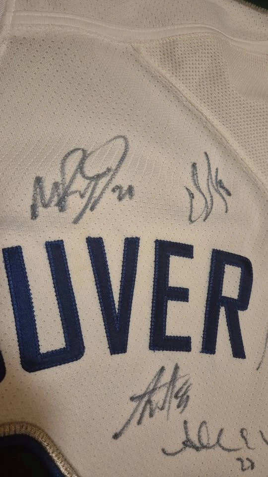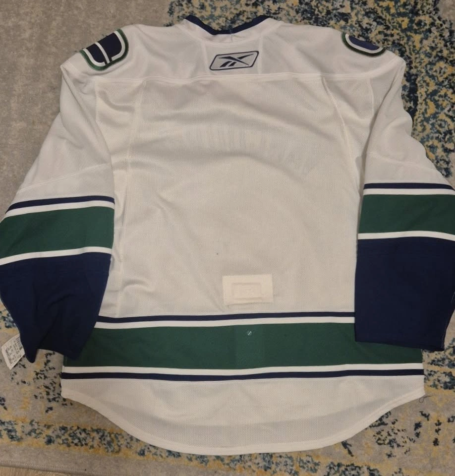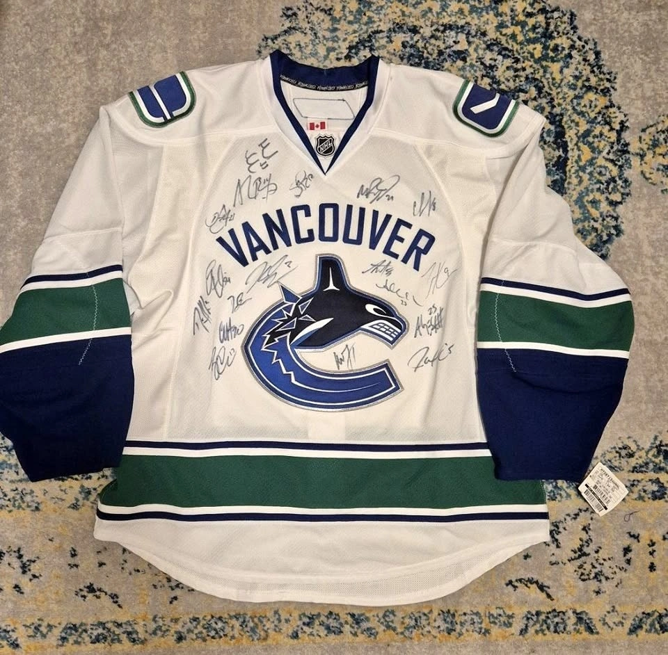 Authentic Reebok Edge 2.0 Vancouver Canucks Away Jersey, signed by the near-complete roster for the 2010-2011, Presidents Trophy-winning, Stanley Cup-contending team. Size 56. This is a team-issued jersey, identical to what the players wear/wore on the ice. Purchased at auction years ago. Signatures include Canucks legends such as Henrik Sedin, Daniel Sedin, Alex Burrows, Mason Raymond, Kevin Bieksa, Roberto Luongo, Alex Edler, Dan Hamhius, and more. Original tag is still attached. Frame this piece of Canucks history for an incredible collector's display. Message with any questions. Considering all reasonable offers. Will only deal with cash transactions. Public meetup preferred.