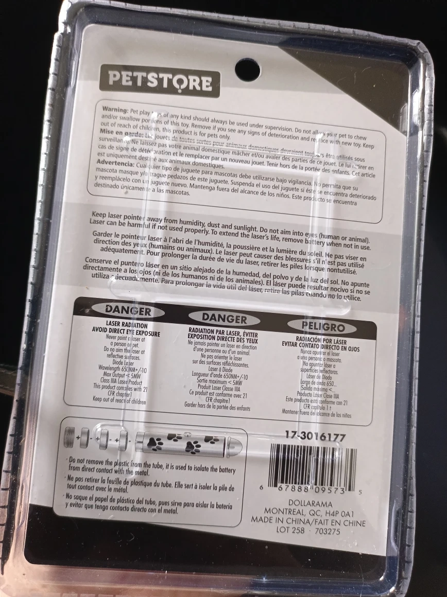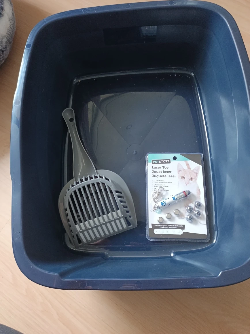 Selling a Petstore laser toy for cats, still in its original packaging! It includes the laser pointer and LR44 batteries. Also included is a Vibrant Life large cat litter pan.